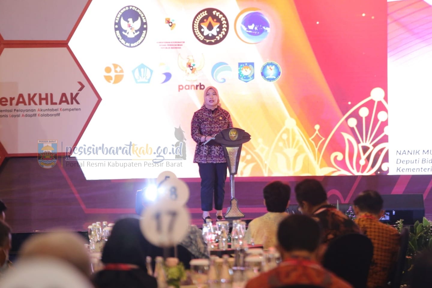 Bupati Pesisir Barat, Dr. Drs. Agus Istiqlal, S.H., M.H. yang dalam hal ini diwakili oleh Kadis Kominfotiksan Kabupaten Pesisir Barat, Suryadi, S.IP., M.M. menghadiri secara langsung kegiatan tersebut bertempat di Kempinski Grand Ballroom, Hotel Indonesia Kempinski, Jakarta Pusat.