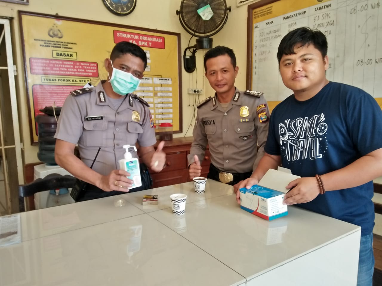 Kepala Dinas Kesehatan Kabupaten Pesisir Barat, Tedi Zadmiko, SKM., SH., MM. menyampaikan bahwa pihaknya telah membagikan 1 (satu) box masker (50pcs) dan 1 (satu) botol handsanitizer (500ml) kepada semua Satuan Kerja, Kecamatan, Polsek, Koramil, Cabjari, Samsat serta Kantor Pemerintah lainnya khusus yang bersentuhan langsung dengan pelayanan publik. Dikarenakan keterbatasan stok maka Jumlah tersebut saat ini yang dapat dibagikan oleh Dinas Kesehatan Pesisir Barat.