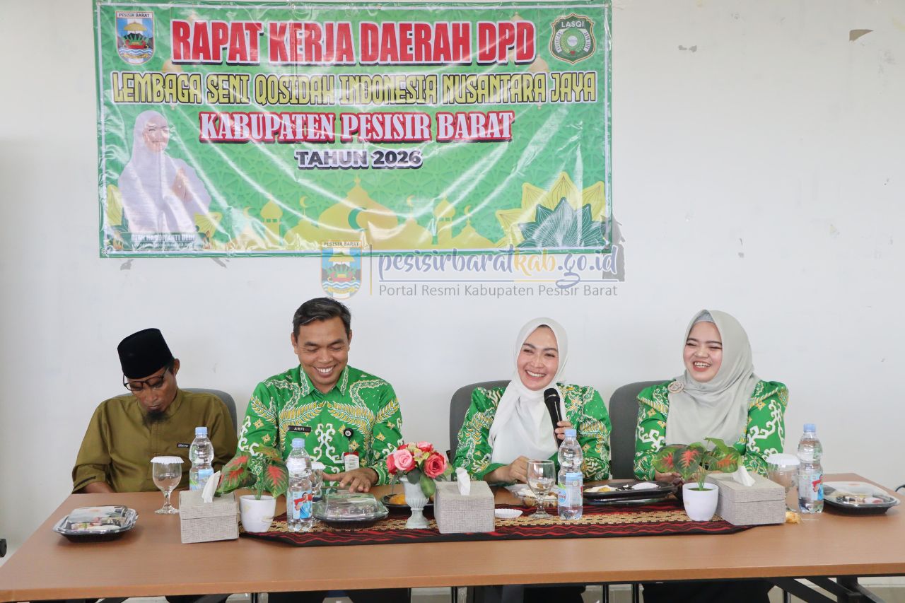 Krui – Dewan Pimpinan Daerah (DPD) Lembaga Seni Qasidah Indonesia (LASQI) Nusantara Jaya Kabupaten Pesisir Barat menggelar Rapat Kerja Daerah (Rakerda) Tahun 2026, kegiatan tersebut berlangsung di Ruang Rapat Sekretaris Daerah (Ruang Karang Nyimbor), Lantai 3, Kompleks Perkantoran Pemerintah Kabupaten Pesisir Barat, Jumat (30/1/2026).