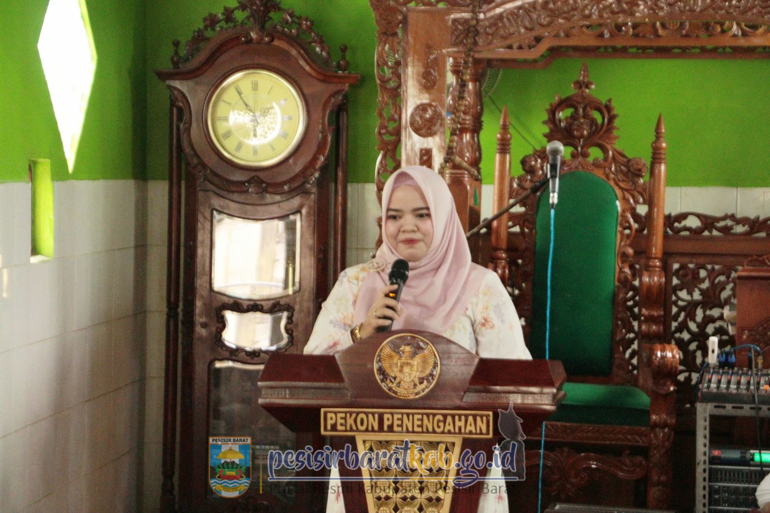 PESISIR BARAT-Wakil Ketua I Badan Kontak Majelis Taklim (BKMT) Kabupaten Pesisir Barat (Pesibar), Dea Derika Topani, S.H., M.Kn., menghadiri pengajian rutin di Masjid Al-Furqon Pekon Penengahan Kecamatan Karya Penggawa, Jumat (31/10/2025).