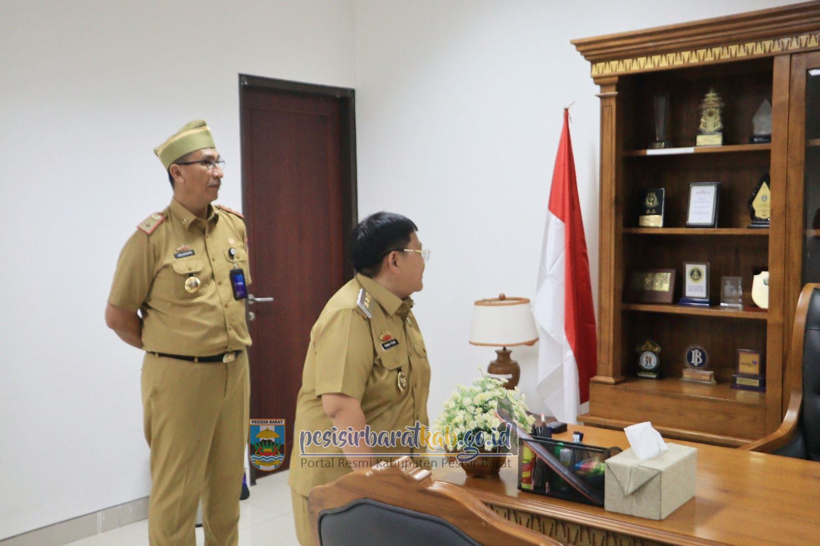 PESISIR BARAT-Kepala Dinas Komunikasi, Informatika, Statistik, dan Persandian (Diskominfotiksan) Suryadi, S.IP., M.M., menginformasikan bahwa, Wakil Bupati Pesisir Barat (Pesibar), Irawan Topani, S.H., M.Kn., memulai aktifitas perdananya dengan melalukan peninjauan terhadap seluruh Organisasi Perangkat Daerah (OPD) di lingkungan Pemkab Pesibar, Senin (24/2/2025).