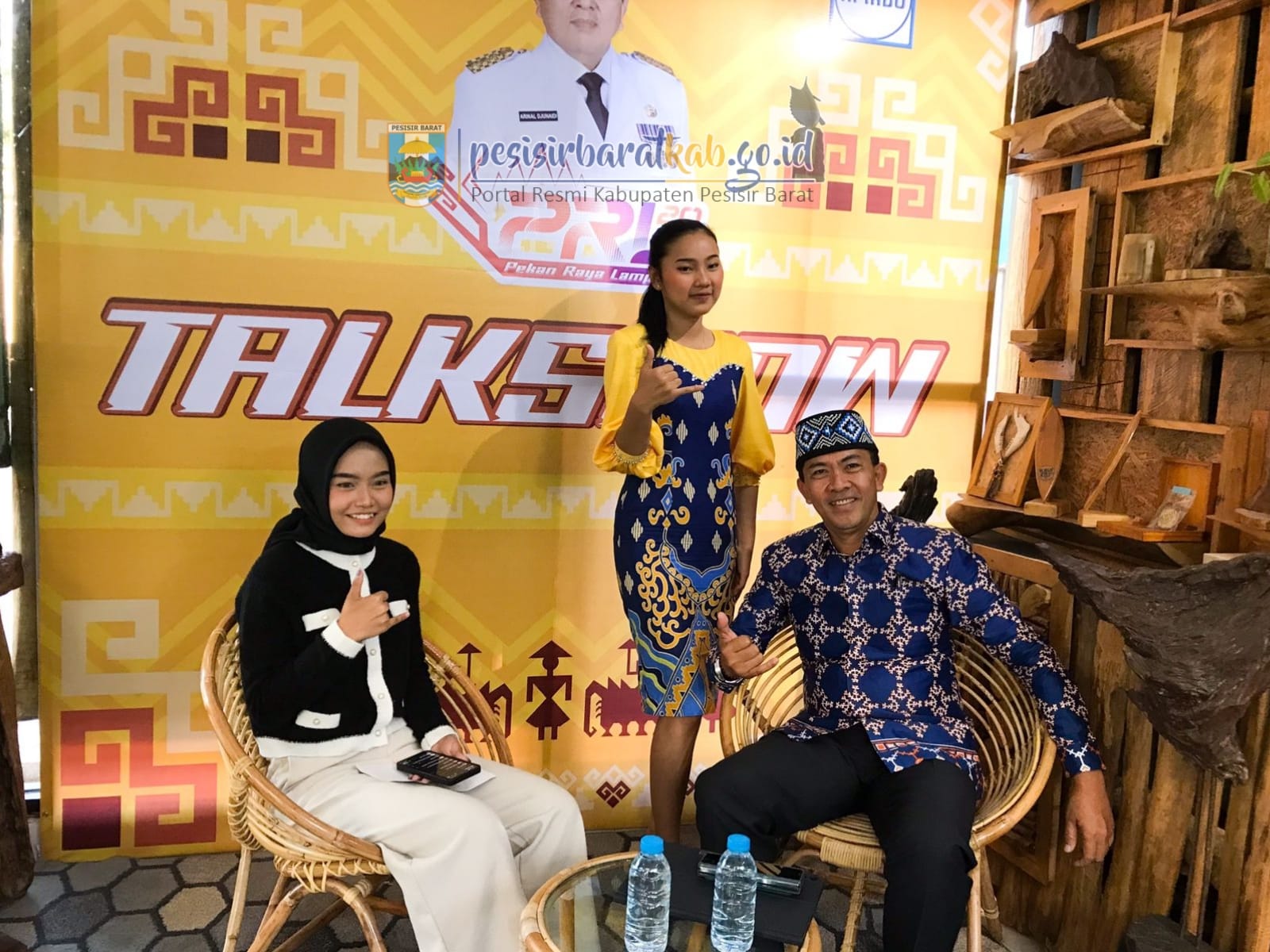 PESISIR BARAT-Kepala Dinas Komunikasi, Informatika, Statistik dan Persandian (Diskominfotiksan), Suryadi, S.IP., M.M. menginformasikan bahwa, Bupati Pesisir Barat (Pesibar), Dr. Drs. Agus Istiqlal, S.H., M.H., diwakili Kepala Dinas Pariwisata (Dispar) Pesibar I Nyoman Setiawan, S.E., M.M., menghadiri sekaligus menjadi narasumber dalam Talkshow Kepala Daerah dalam rangkaian Pekan Raya Lampung Tahun 2023, di Pasar Kreatif dan Seni PKOR Way Halim Bandar Lampung.