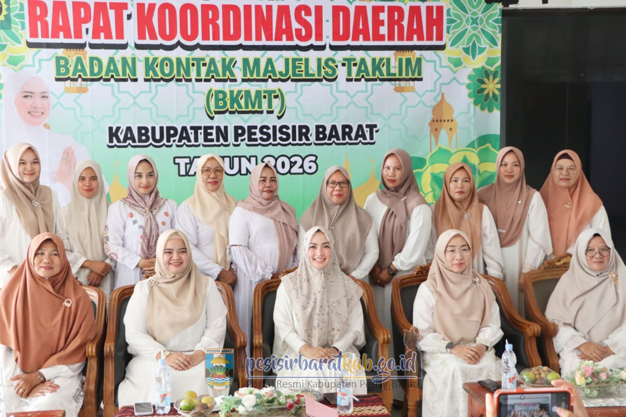 PESISIR BARAT-Ketua Badan Kontak Majelis Taklim (BKMT) Kabupaten Pesisir Barat (Pesibar), Dian Hardiyanti Dedi, S.ST., M.M., membuka secara langsung Rapat Koordinasi Daerah (Rakorda) Badan Kontak Majelis Taklim (BKMT) Kabupaten Pesisir Barat (Pesibar), di Selasar Gedung Marga Saibatin, Rabu (21/1/2026).