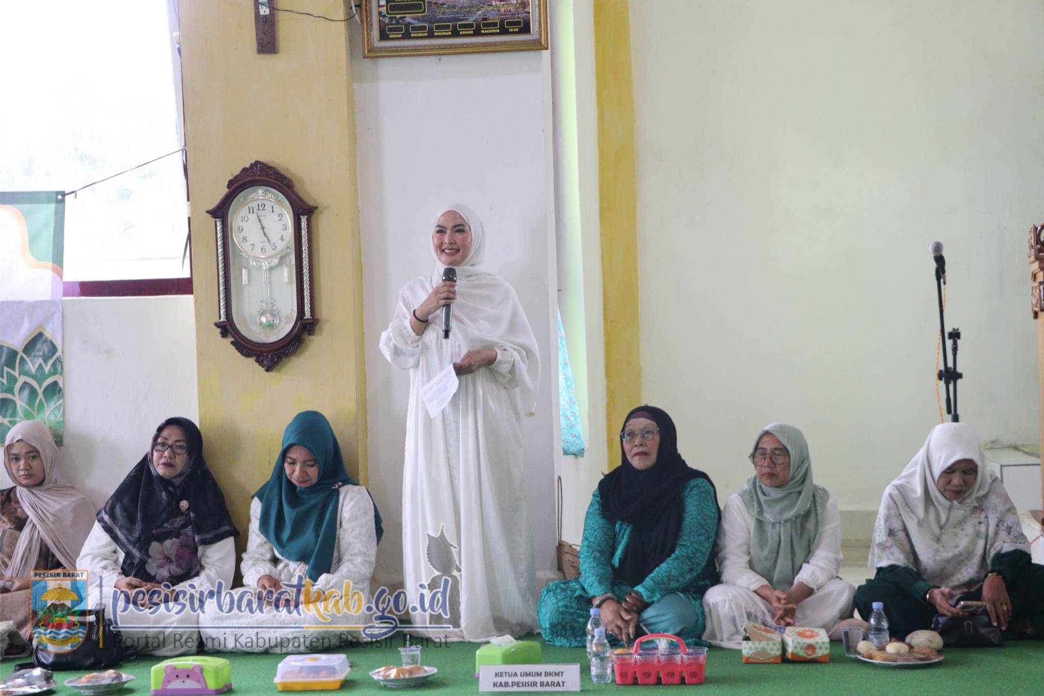 PESISIR BARAT-Ketua Badan Kontak Majelis Taklim (BKMT) Kabupaten Pesisir Barat (Pesibar), Dian Hardiyanti Dedi, S.ST., M.M., menghadiri pengajian rutin di Kecamatan Pulau Pisang, Selasa (16/9/2025).