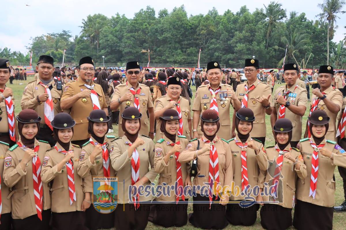 PESISIR BARAT-Wakil Bupati Pesisir Barat (Pesibar) sekaligus Ketua Kwartir Cabang (Kwarcab) Gerakan Pramuka Pesibar, Irawan Topani, S.H., M.Kn., menghadiri kegiatan apel besar dalam rangka memperingati Hari Pramuka ke-64 Tahun 2025 tingkat Provinsi Lampung yang digelar di Lapangan Tri Tunggal Jaya Kecamatan Banjar Agung Kabupaten Tulang Bawang Barat (Tubaba), Sabtu (30/8/2025).