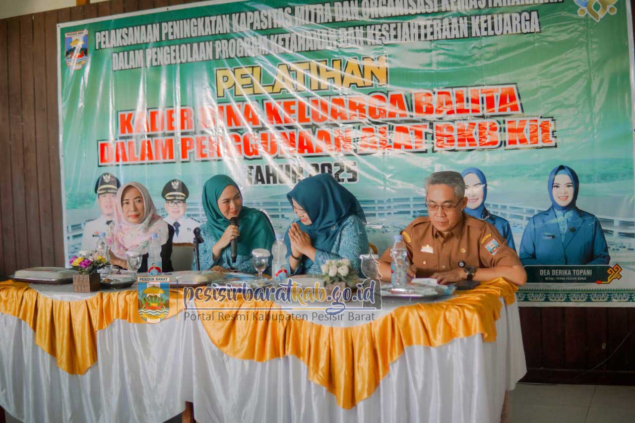 PESISIR BARAT-Ketua Tim Penggerak-Pemberdayaan Kesejahteraan Keluarga (TP-PKK) Kabupaten Pesisir Barat (Pesibar), Dian Hardiyanti Dedi, S.ST., M.M., membuka kegiatan pelatihan kader Bina Keluarga Balita (BKB) dalam penggunaan alat BKB Kit, di aula Hotel Sunset Beach, Senin (25/8/2025)