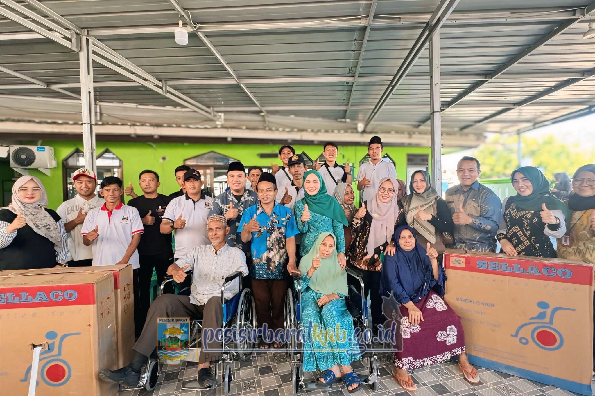 PESISIR BARAT-Ketua Tim Penggerak-Pemberdayaan Kesejahteraan Keluarga (TP-PKK) Kabupaten Pesisir Barat (Pesibar), Dian Hardiyanti Dedi, S.ST., M.M., menyerahkan bantuan alat bantu kursi ruda terhadap 10 Kelurga Penerima Manfaat (KPM) penyandang disabilitas, di Halaman Masjid Muttaqodimin, Kelurahan Pasar Krui Kecamatan Pesisir Tengah, Jumat (19/9/2025).