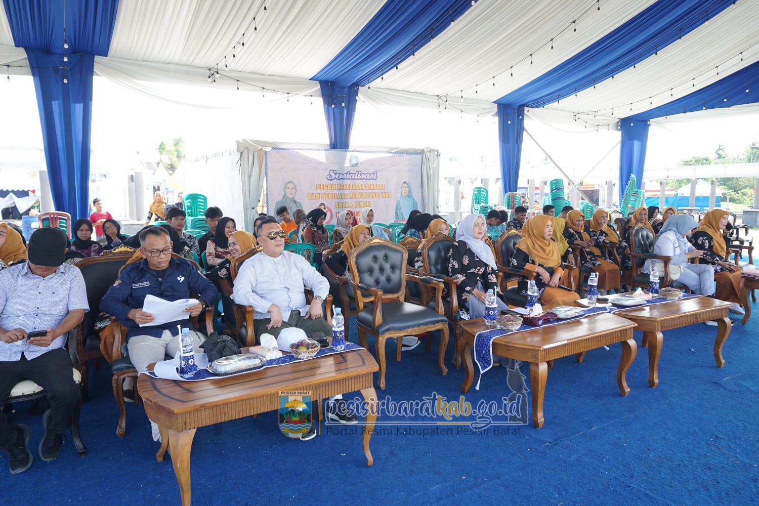 PESISIR BARAT-Kepala Dinas Komunikasi, Informatika, Statistik dan Persandian (Diskominfotiksan), Suryadi, S.IP., M.M., menginformasikan bahwa, Ketua Tim Penggerak-Pemberdayaan Kesejahteraan Keluarga (TP-PKK) Kabupaten Pesisir Barat (Pesibar), Septi Heri Agusnaeni, S.E., M.H., membuka kegiatan sosialisasi cegah kekerasan seksual dan perilaku menyimpang pada anak dan remaja, di lapangan Komplek Perkantoran Pemkab Pesibar, Minggu (14/7/2024).