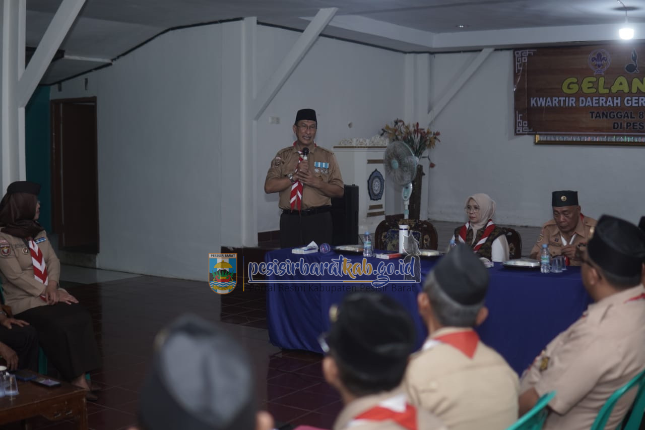 PESISIR BARAT-Kepala Dinas Komunikasi, Informatika, Statistik dan Persandian (Diskominfotiksan), Suryadi, S.IP., M.M., menginformasikan bahwa, Kwartir Cabang (Kwarcab) Gerakan Pramuka Kabupaten Pesisir Barat (Pesibar) menggelar ramah tamah dengan Kwartir Daerah (Kwarda) Gerakan Pramuka Provinsi Lampung, di Sanggar Pramuka, Kecamatan Pesisir Tengah, Rabu (8/5/2024) malam.