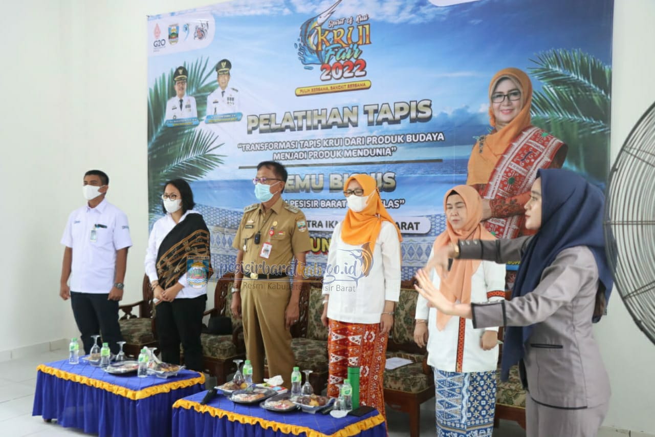 Masih dalam rangkaian kegiatan Krui Fair 2022, Bupati Pesisir Barat menghadiri Kegiatan Pelatihan Tapis dan Pengemasan serta Temu Bisnis yang berlokasi di Gedung Sentra UKM Dekranasda Pesisir Barat.