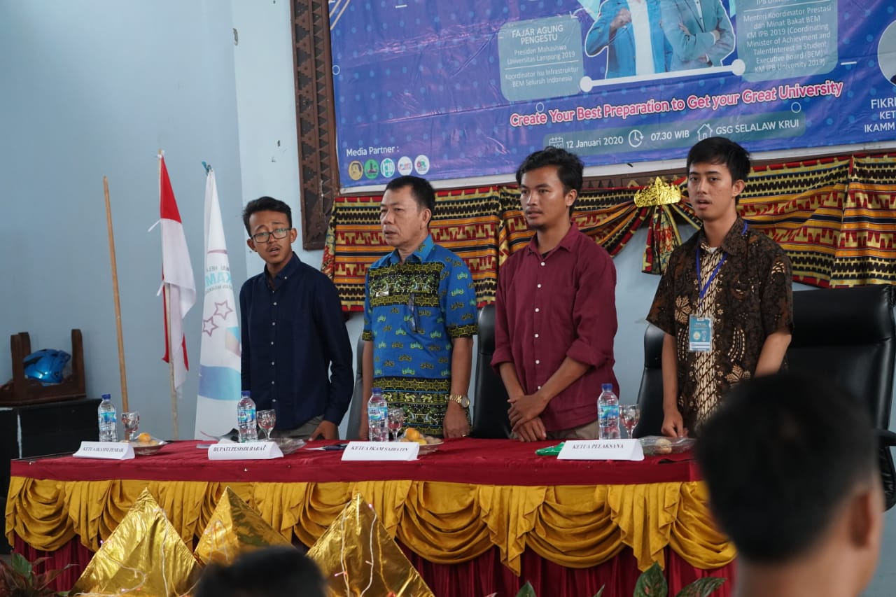 Selanjutnya, Seiring perkembangan zaman teknologi di era modern seleksi bersama masuk perguruan tinggi negeri (SBMPTN) sudah semakin berkembang, mulai dari pendaftaran masuk perguruan tinggi negeri (PTN) hingga ujian masuk dan pengumumannya pun sudah berbasis online. Oleh sebab itu, saya mengapresiasi kegiatan TRY OUT seleksi bersama masuk perguruan tinggi negeri (SBMPTN) yang diselenggarakan oleh ikatan mahasiswa muslim (IKAMM) Pesisir Barat dalam rangka membantu siswa-siswi SMA sederajat yang ada di kabupaten pesisir barat ini.