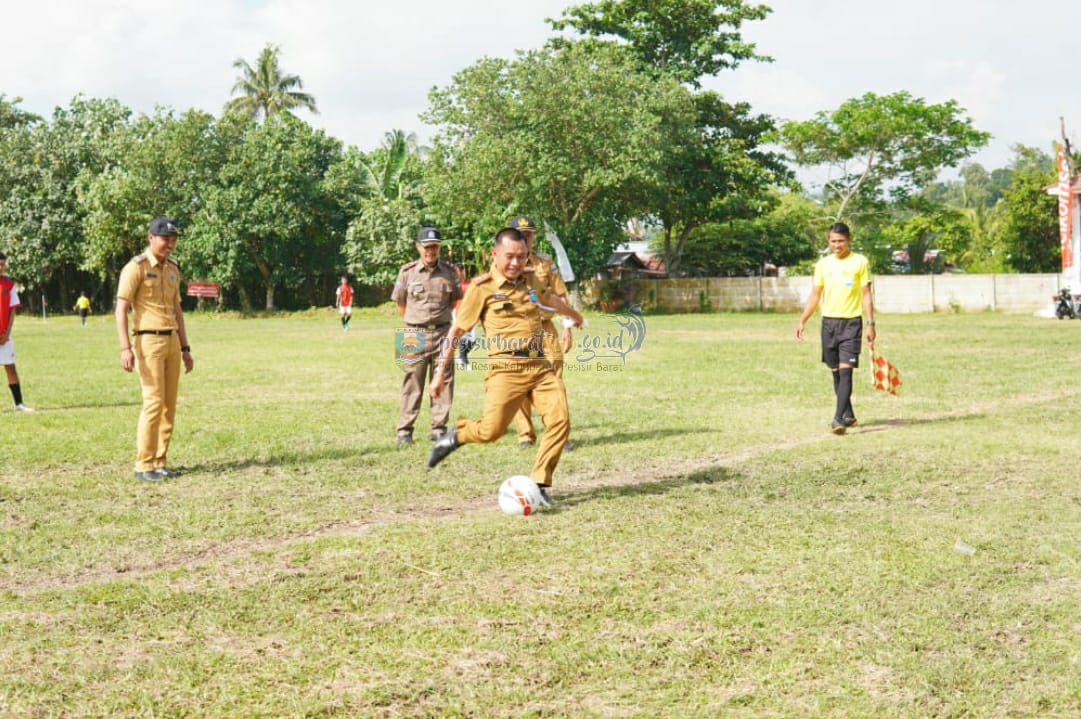 Ketua BARAKUDA Tedi Zadmiko, SKM, SH, MM dalam hal ini diwakili oleh Kepala Dinas Sosial Agus Triadi, S.IP., M.M., membuka acara turnamen Sepakbola ini dengan simbolis melakukan tendangan pertama.