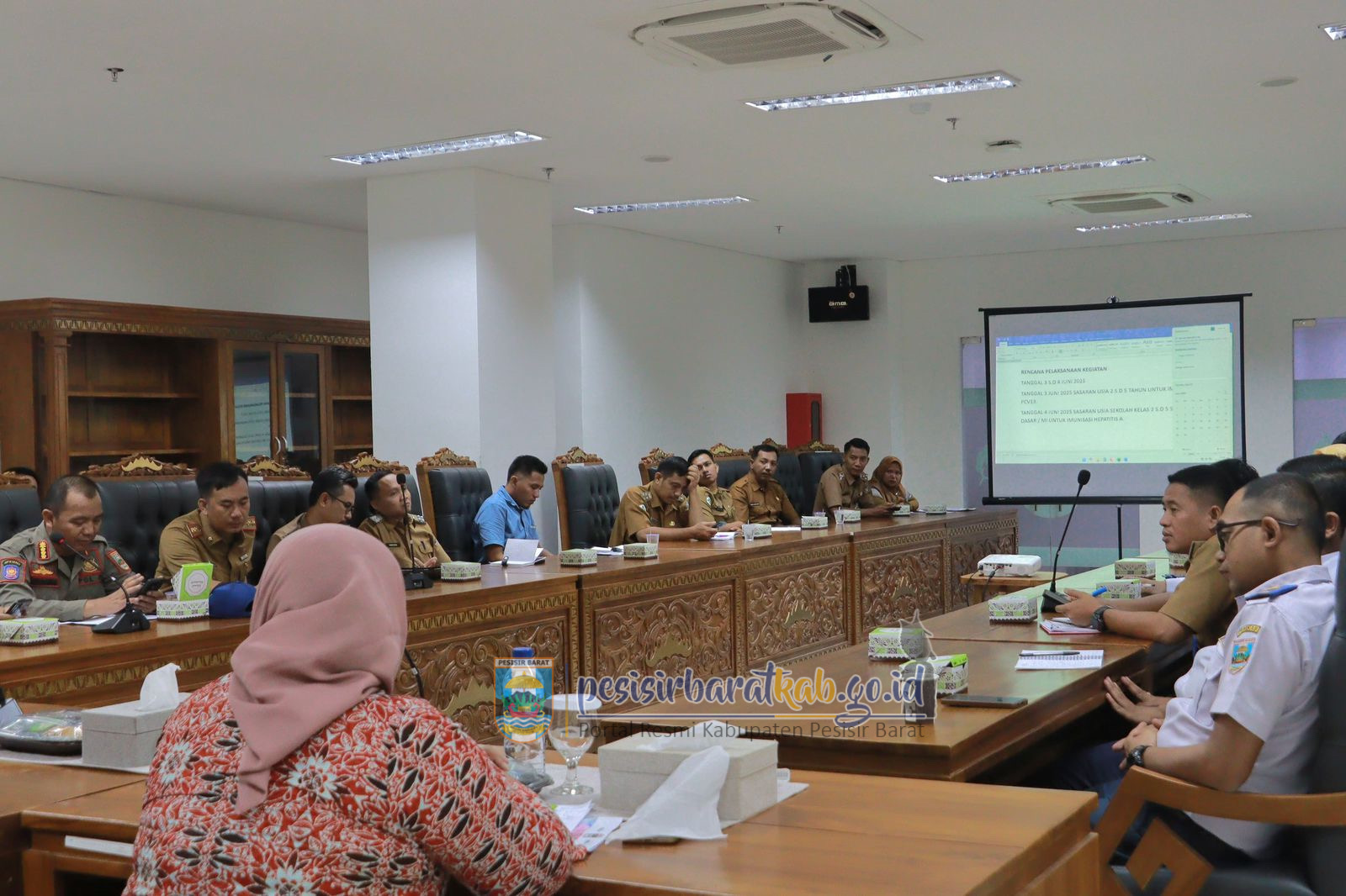 PESISIR BARAT-Kepala Dinas Komunikasi Informatika Statistik dan Persandian Kabupaten Pesisir Barat Suryadi, S.IP., M.M., menginformasikan bahwa, Wakil Bupati Pesisir Barat (Pesibar), Irawan Topani, S.H., M.Kn., mengikuti Rapat Koordinasi (Rakor) dalam rangka penetapan kegiatan prioritas 100 hari kerja Bupati dan Wakil Bupati 2025-2030, di ruang rapat Bupati Lantai 4 Gedung Marga Sai Batin Komplek Perkantoran Pemkab Pesibar, Senin (19/5/2025).