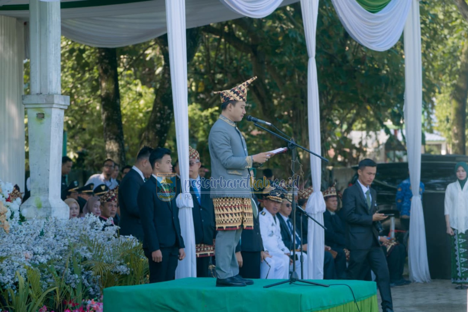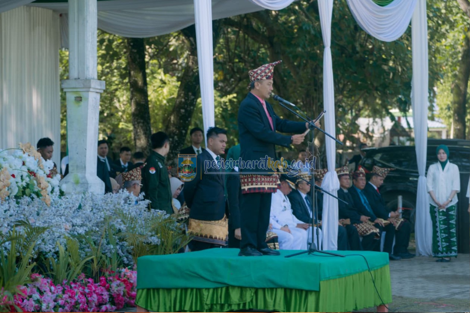 Dalam amanat Inspektur Upacara Bupati Kabupaten Pesisir Barat, Dedi Irawan menyampaikan, Perjalanan 13 tahun Kabupaten Pesisir Barat adalah perjalanan yang penuh makna. Bukan hanya tentang waktu yang telah berlalu, namun tentang sebuah perjuangan panjang yang dibangun dari semangat, pengorbanan, dan harapan besar seluruh masyarakat.