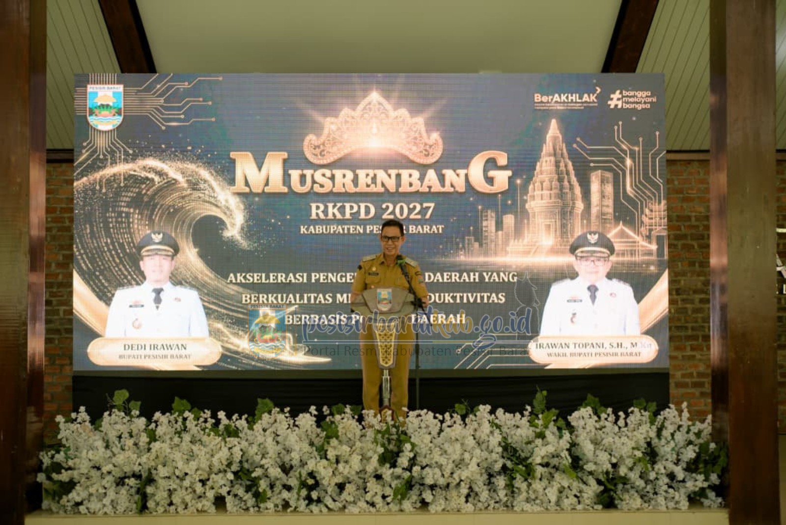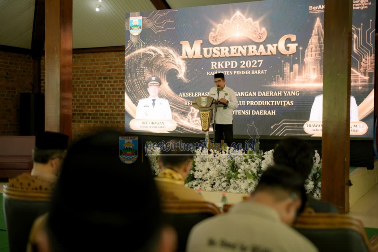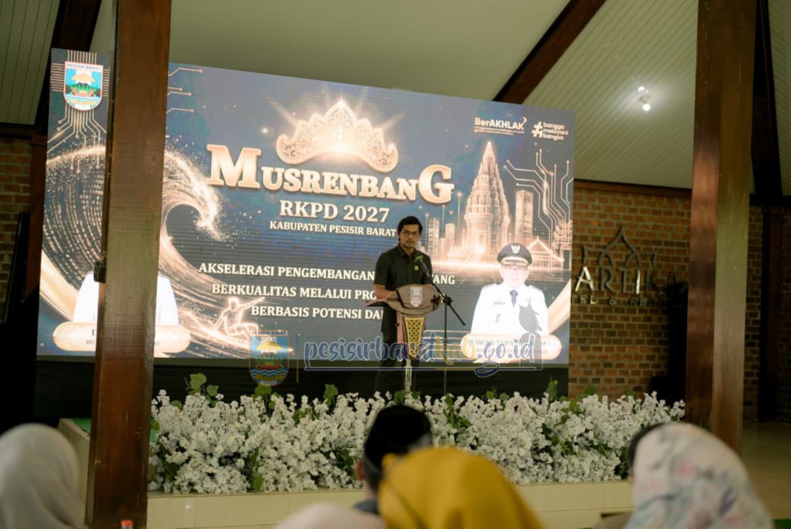 Sambutan Bupati Pesisir Barat yang dibacakan oleh Asisten II Bidang Perekonomian dan Pembangunan, Drs. Zukri Amin, M.P., menegaskan pentingnya sinergi dan kesamaan persepsi di tengah berbagai keterbatasan. Ia menyampaikan bahwa RKPD Tahun 2027 merupakan tahun kedua pelaksanaan RPJMD 2025–2029.