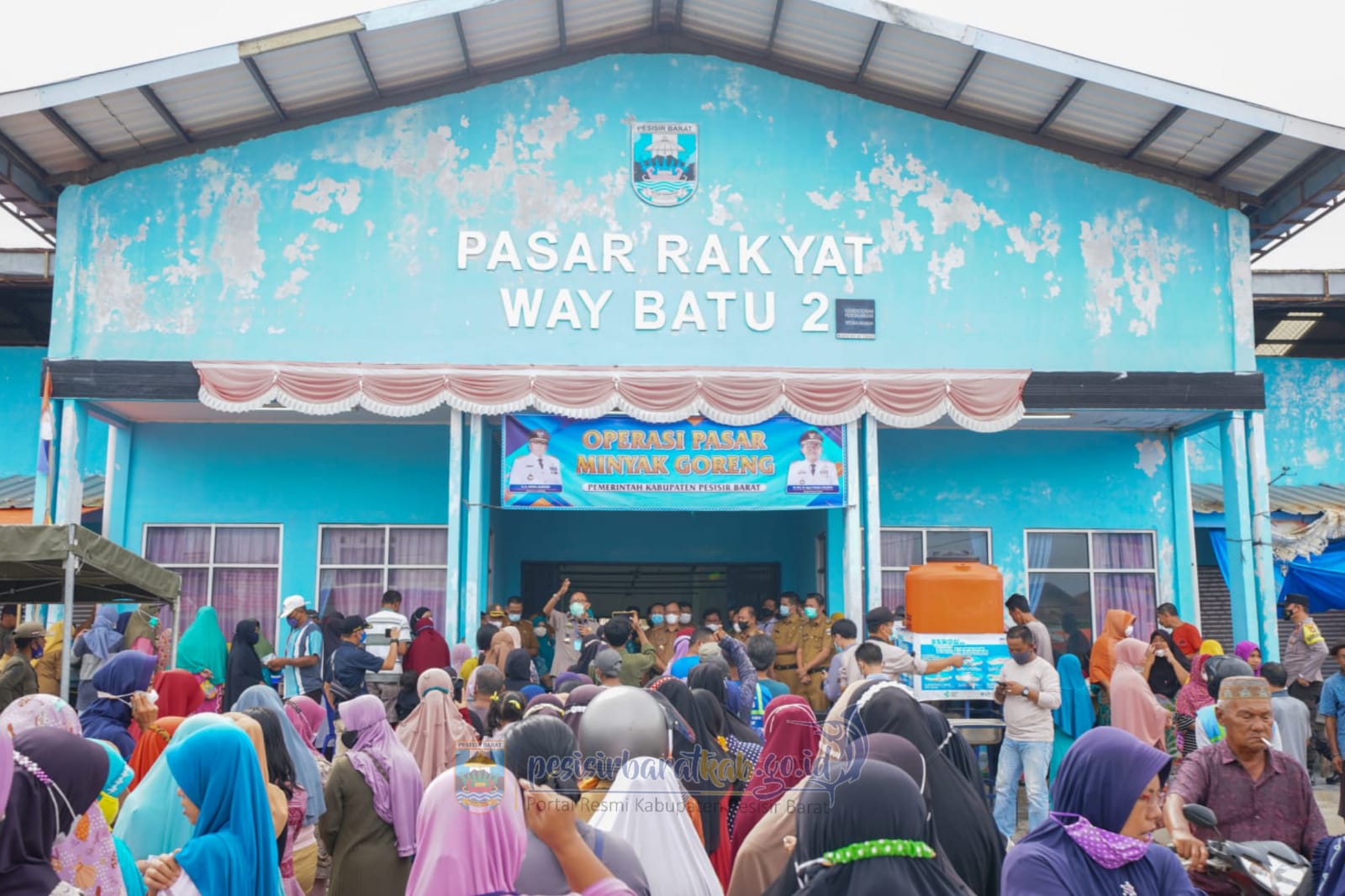Bupati Pesisir Barat Dr. Drs .Agus Istiqlal, SH,. MH membuka secara langsung operasi pasar minyak goreng yang berlokasi di Pasar Way Batu.