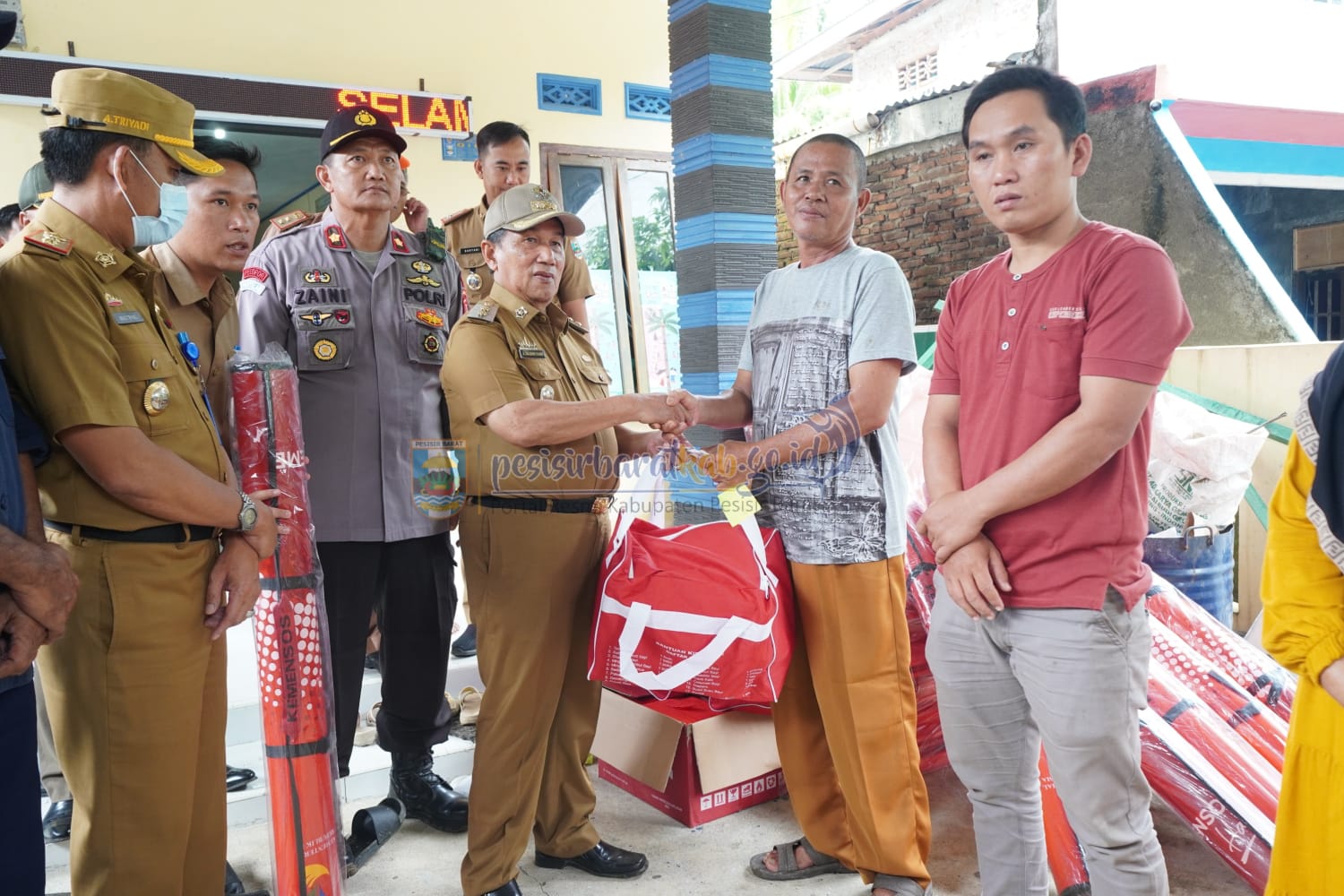 Wakil Bupati Pesisir Barat A. Zulqoini Syarif, S.H melakukan peninjauan dibeberapa lokasi yang terdampak bencana sekaligus menyerahkan bantuan kepada masyarakat yang rumahnya terdampak banjir.