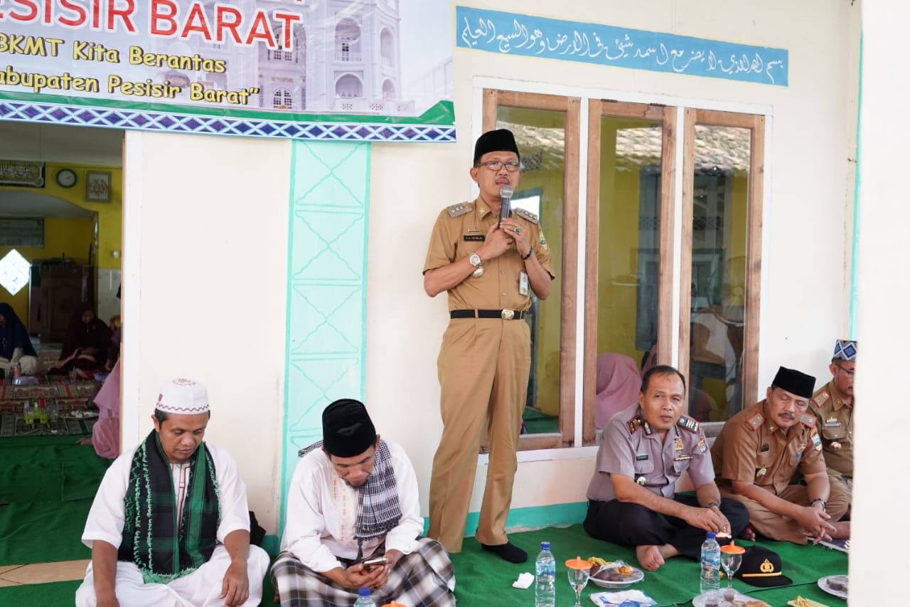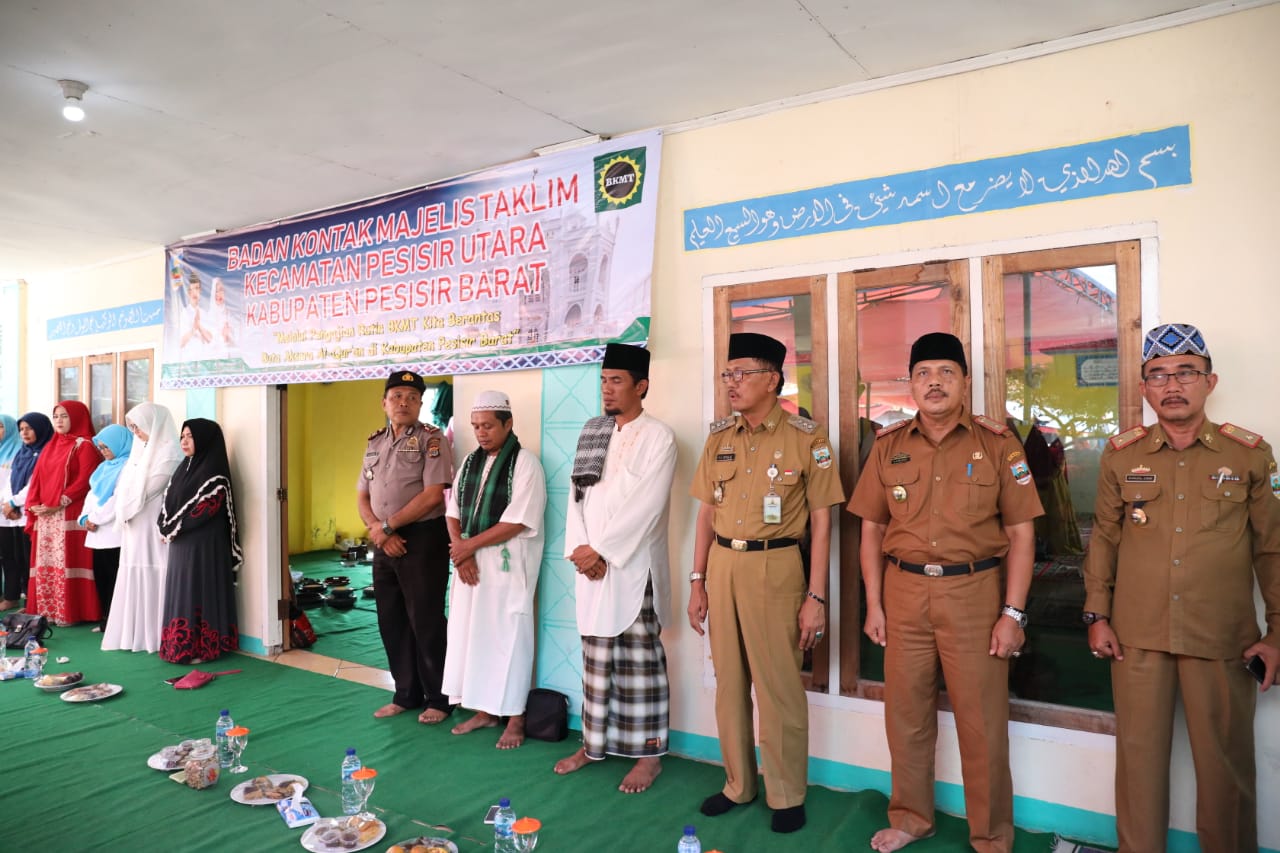 Bupati Pesisir Barat Dr.Drs.Agus Istiqlal,SH.,MH di dampingi oleh Ketua Umum BKMT Kabupaten Pesisir Barat Hj.Septi Istiqlal menghadiri pengajian rutin bulanan Badan Kontak Majlis Taklim (BKMT) di Masjid Al- Ridho Pekon Kerbang Dalam Kecamatan Pesisir Utara pada hari Selasa 19 November 2019.