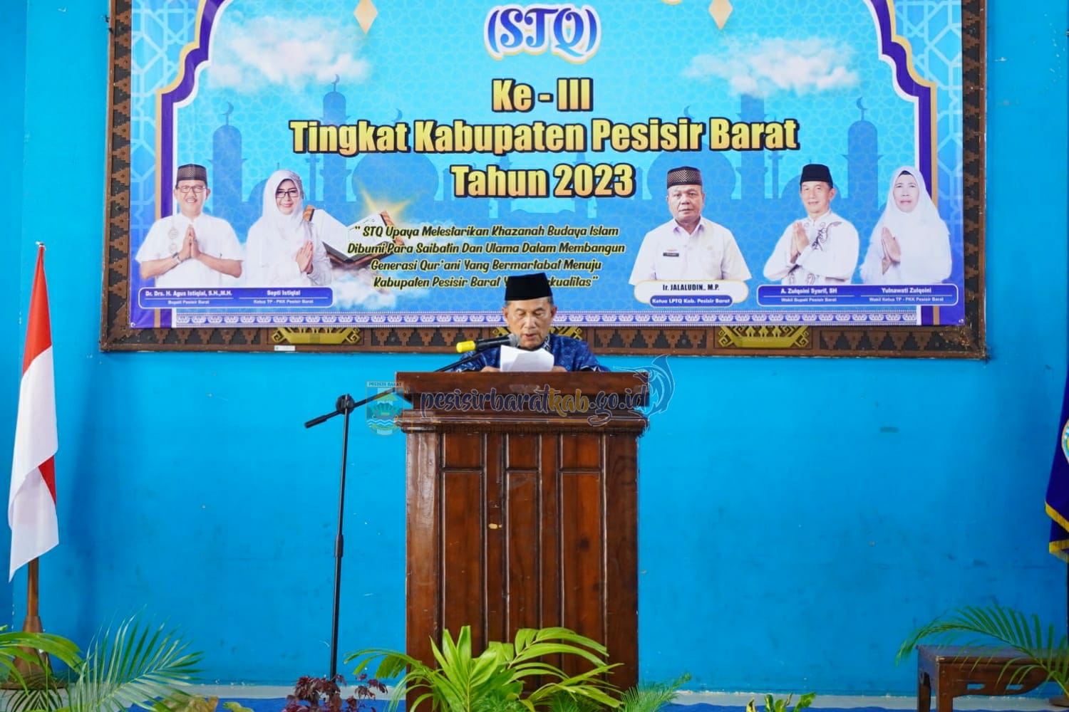 Dalam Laporan Ketua LPTQ Kab. Pesisir Barat, Ir. Jalaludin, MP., yang dalam ini di wakili oleh Ketua 1 LPTQ Kab. Pesisir Barat, Audi Marpi Spd, M.M., menyampaikan penghargaan dan ucapan terimakasih kepada semua pihak yang telah memberikan kontribusi bagi kesuksesan penyelenggaraan STQ ke-III tingkat Kabupaten Pesisir Barat tahun 2023 kali ini, khususnya jajaran Pemerintah Daerah, Panitia Penyelenggara Pengurus LPTQ, dan seluruh masyarakat Kab. Pesisir Barat yang telah mendukung penuh dan ikut berpartisipasi dalam pelaksanaan STQ ini.