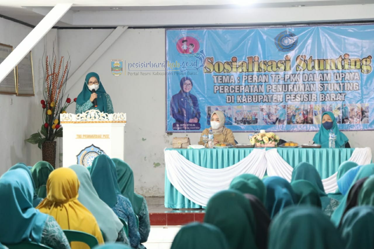 Kegiatan Sosialisasi tersebut dibuka langsung oleh Ketua TP,-PKK Kabupaten Pesisir Barat Septi Istiqlal dan dihadiri Wakil Ketua TP PKK Yulyanawati Zulqoini, Narasumber dr. Atiek Wulandari Sp.A.,M.Biomed, Pengurus TP-PKK Kabupaten Pesisir Barat, TP-PKK Kecamatan dan TP-PKK Pekon.