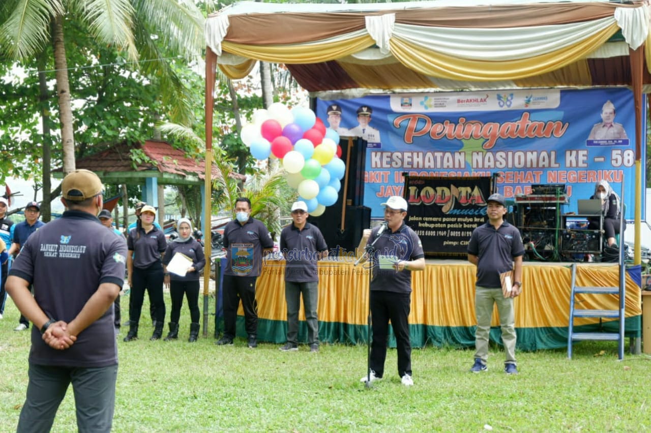 Kadis Kominfotik dan Persandian Pesisir Barat Suryadi.,S.IP,MM menginformasikan bahwa Pemkab Pesisir Barat melalui Dinas Kesehatan mengikuti Peringatan Hari Kesehatan Nasional Ke-58 Tahun 2022 dengan Kegiatan apel bersama dan senam bersama, kemudian dilanjutkan dengan bersih-bersih pantai Labuhan Jukung Kec. Pesisir Tengah.