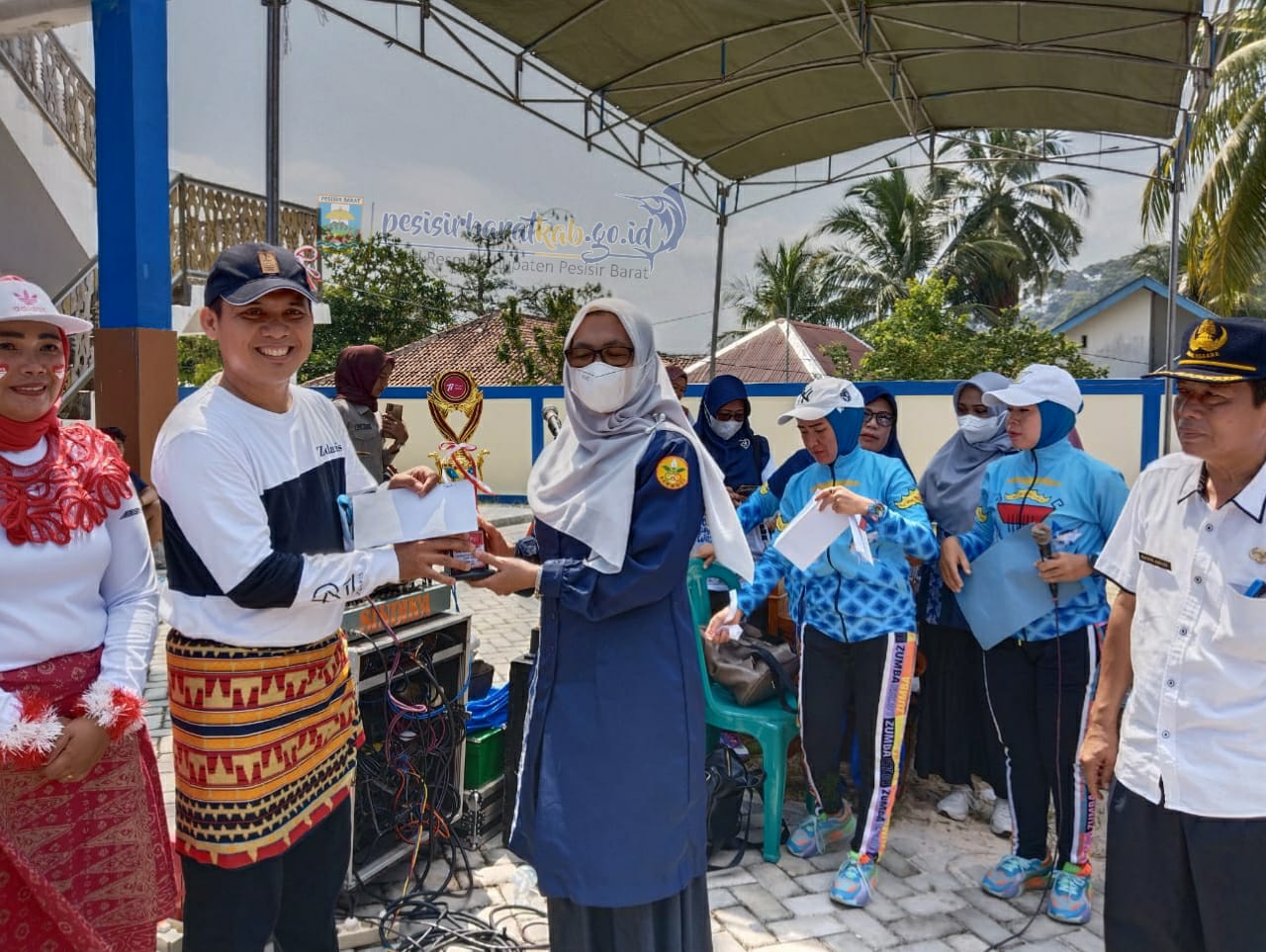 Di akhir kegiatan dilanjutkan dengan pembagian piala penghargaan kepada peserta pemenang lomba senam Pesona dari Ketua Perwosi Pesisir Barat.