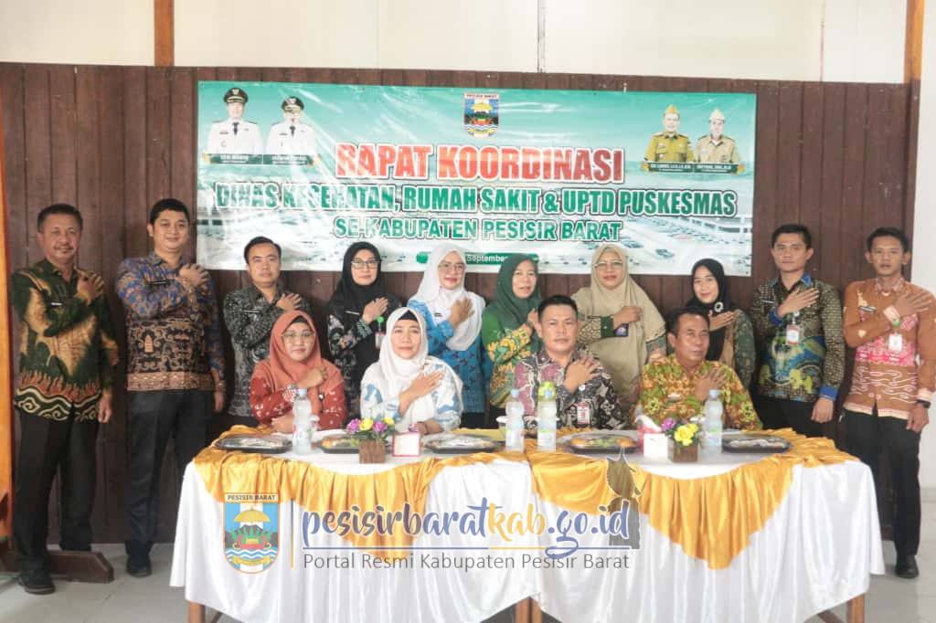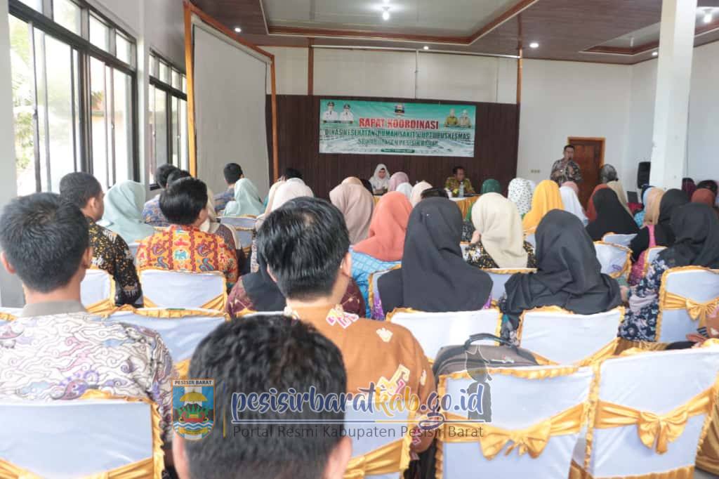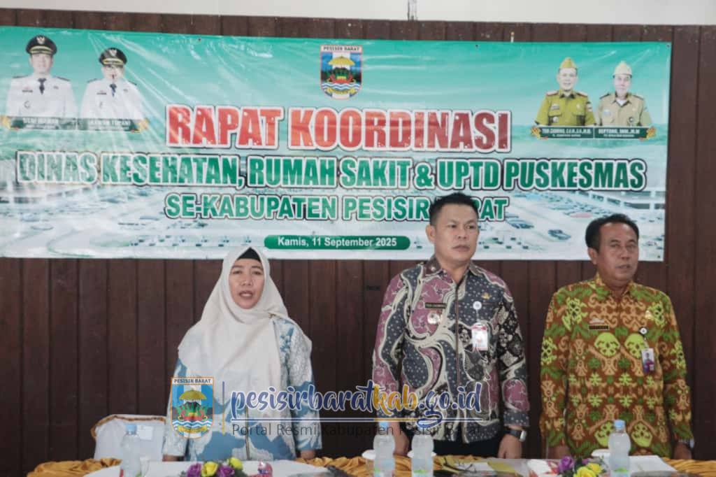 PESISIR BARAT-Pj. Sekda Kabupaten Pesisir Barat (Pesibar), Tedi Zadmiko, S.KM., S.H., M.M., menghadiri sekaligus membuka kegiatan Rapat Koordinasi Dinas Kesehatan (Dinkes), Rumah Sakit, dan Unit Pelaksana Teknis Dinas (UPTD) Puskesmas se-Pesibar Tahun 2025, di aula hotel Sunset Beach Pekon Way Redak Kecamatan Pesisir Tengah, Kamis (11/9/2025).