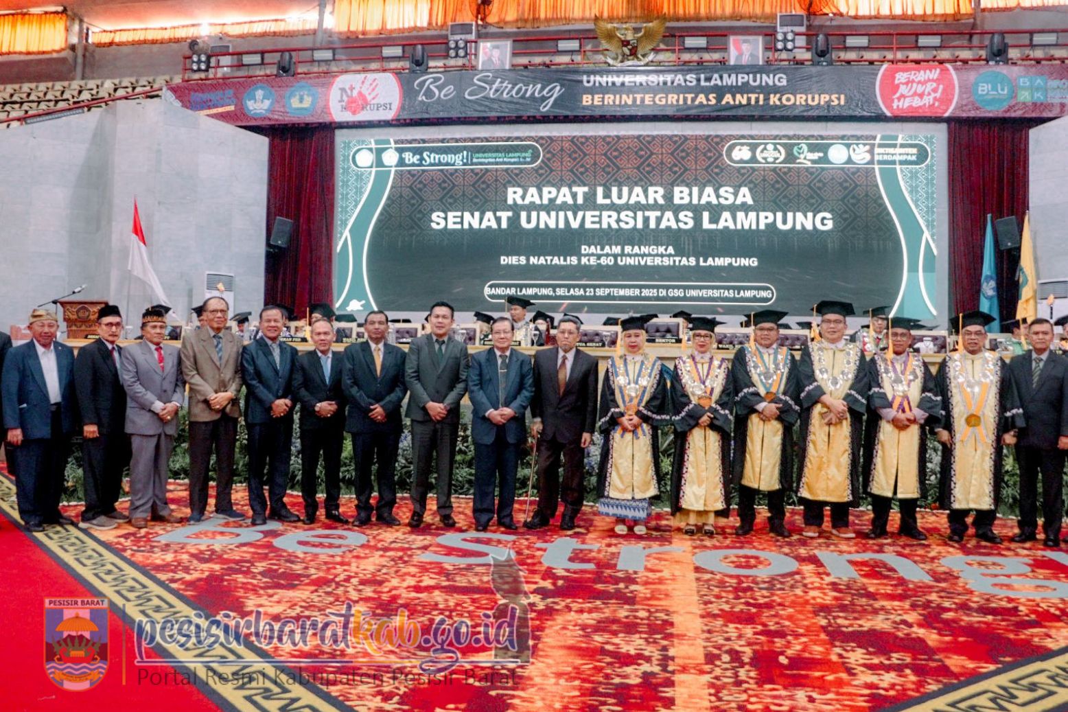 PESISIR BARAT-Pj. Sekda Kabupaten Pesisir Barat (Pesibar), Tedi Zadmiko, S.KM., S.H.,M.M., menghadiri acara puncak Dies Natalis ke-60 Universitas Lampung (Unila), digelar di GSG Unila, Bandar Lampung, Selasa (23/9/2025).