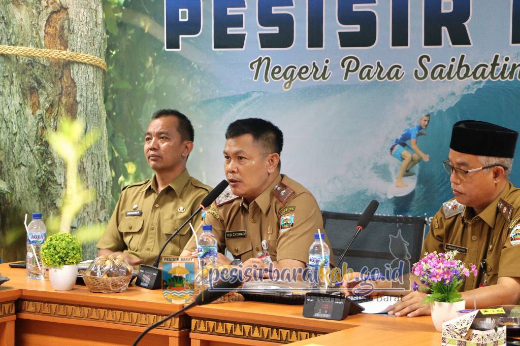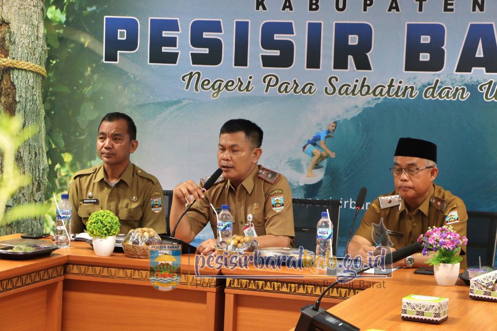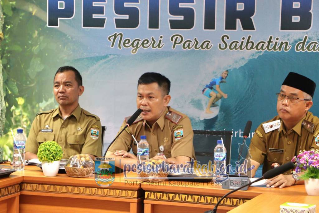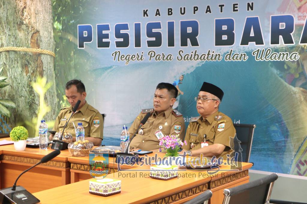 PESISIR BARAT – Penjabat (Pj.) Sekretaris Daerah (Sekda) Pesisir Barat, Tedi Zadmiko, S.KM., S.H., M.M., mewakili Bupati Pesisir Barat dalam rapat koordinasi percepatan proses pembangunan Rumah Sakit Umum Daerah (RSUD) KH. Muhammad Thohir, yang digelar melalui zoom meeting dari Ruang Batu Gukhi Lantai 1 Komplek Perkantoran Pemkab Pesisir Barat, Selasa (9/9/2025).