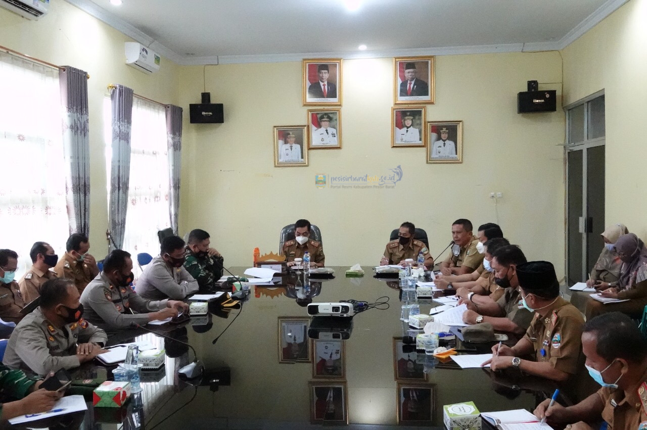 Pjs. Bupati Pesisir Barat Achmad Chrisna Putra memimpin rapat koordinasi dalam rangka evaluasi penanganan dan pencegahan Covid-19 bersama tim gugus tugas.