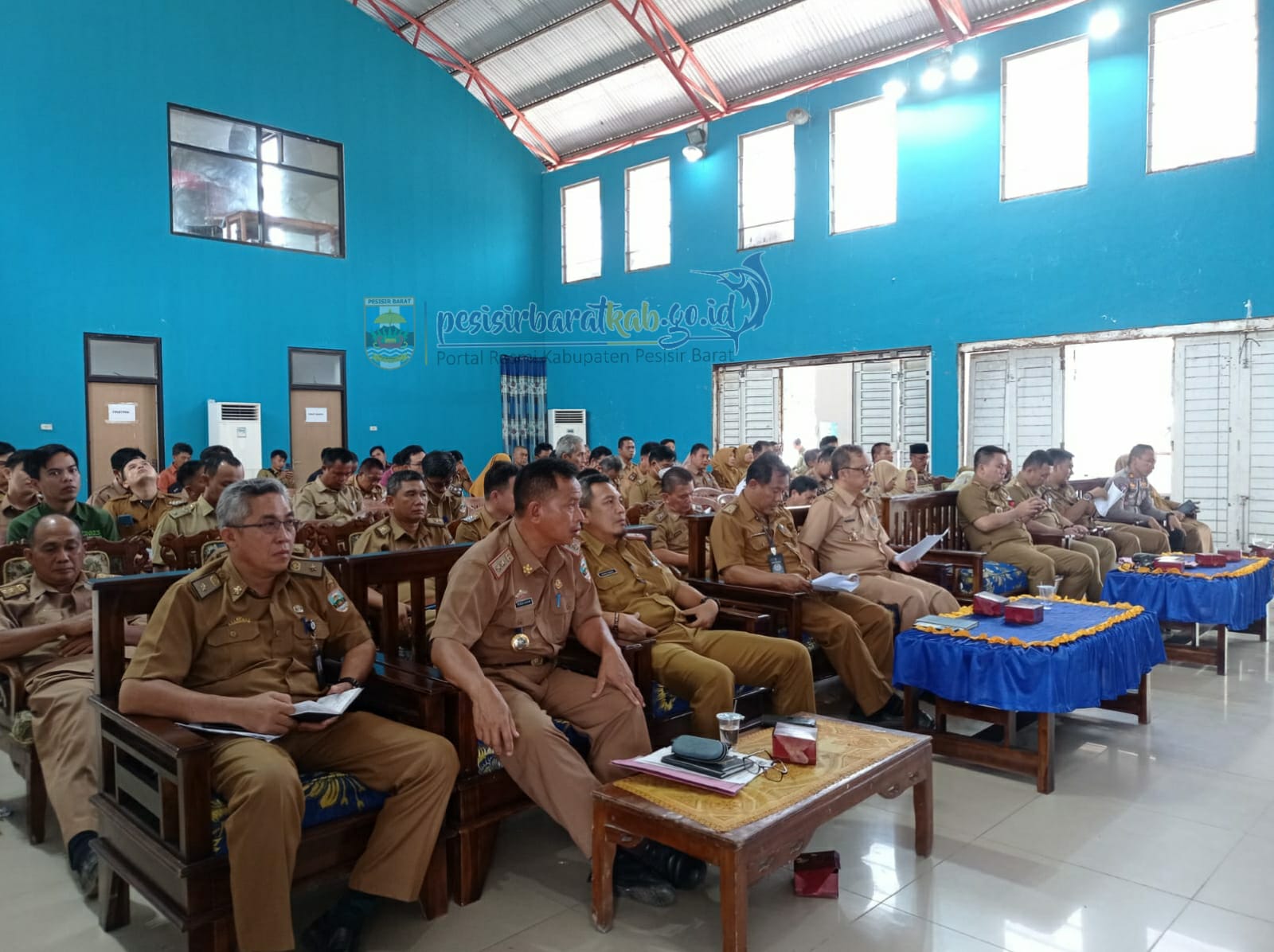 Kadis Kominfotiksan Kabupaten Pesisir Barat, Suryadi, S.IP., M.M. menginformasikan bahwa Bupati Pesisir Barat, Dr. Drs. Agus Istiqlal, S.H.,M.H. membuka secara langsung kegiatan Rapat Koordinasi (Rakor) Bulanan Di lingkungan Pemerintah Kabupaten (Pemkab) Pesisir Barat Tahun 2023 bertempat di GSG (Gedung Serba Guna) Selalaw Labuhan Jukung, Pekon Kampung Jawa, Kecamatan Pesisir Tengah. Rakor Bulanan kali ini membahas tentang pengendalian kenaikan harga bahan pokok dan pengamanan menjelang bulan suci ramadhan serta sebagai wahana evaluasi terkait program kerja yang telah dilaksanakan dalam 1 bulan terakhir.