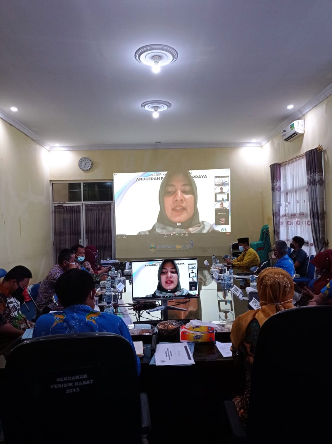 Plh Kabupaten Pesisir Barat Ir. N. Lingga Kusuma, MP. yang diwakili Kepala Dinas Pemberdayaan Perempuan dan Perlindungan Anak (PPPA) Nurkemala, S. Pd., M.M. Menghadiri Rapat Verifikasi Lapangan Anugerah Parahita Ekapraya (APE) Kabupaten Pesisir Barat Tahun 2021.