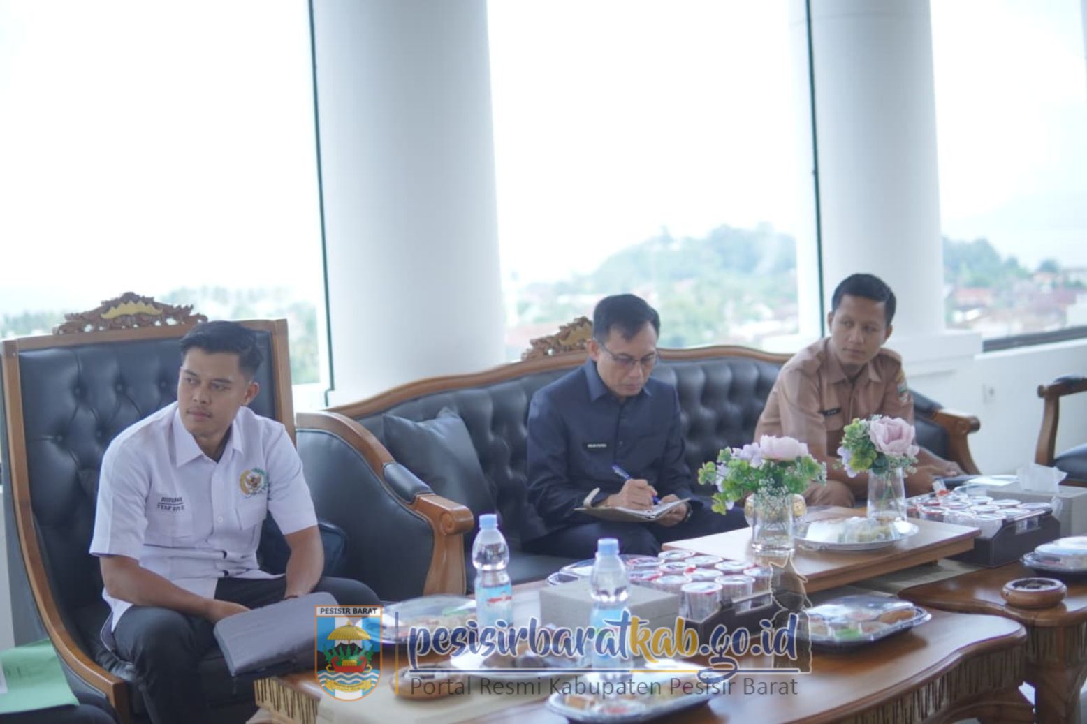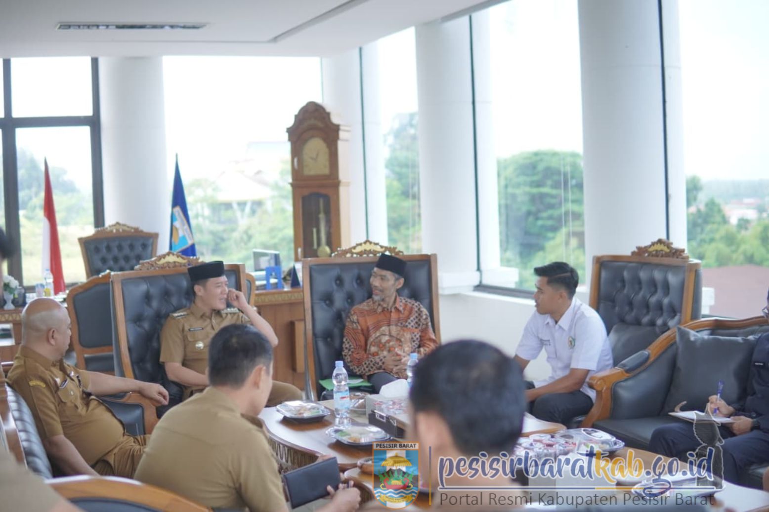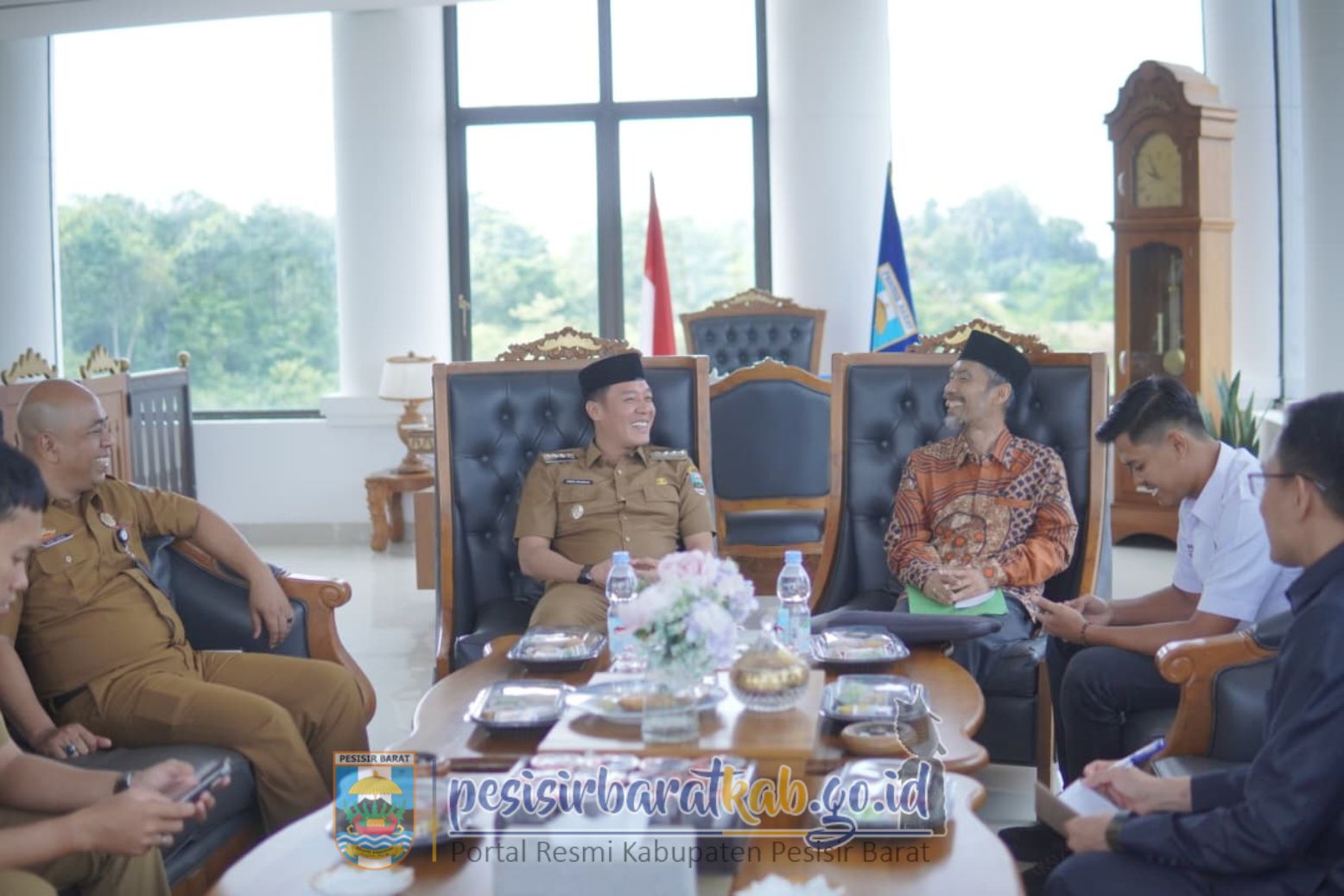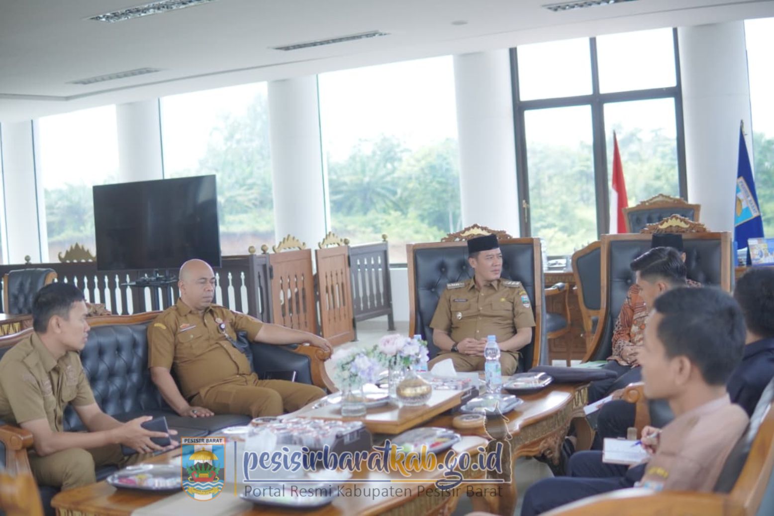 PESISIR BARAT-Bupati Pesisir Barat (Pesibar), Dedi Irawan, menyambut secara langsung Kunjungan Kerja (Kunker) anggota Dewan Perwakilan Daerah-Republik Indonesia (DPD RI) KH. Ir. Abdul Hakim, M.M., di Lantai 5 Gedung Marga Sai Batin Komplek Perkantoran Pemkab Pesibar, Selasa (7/10/2025).