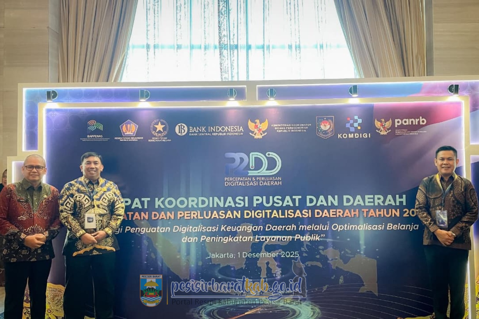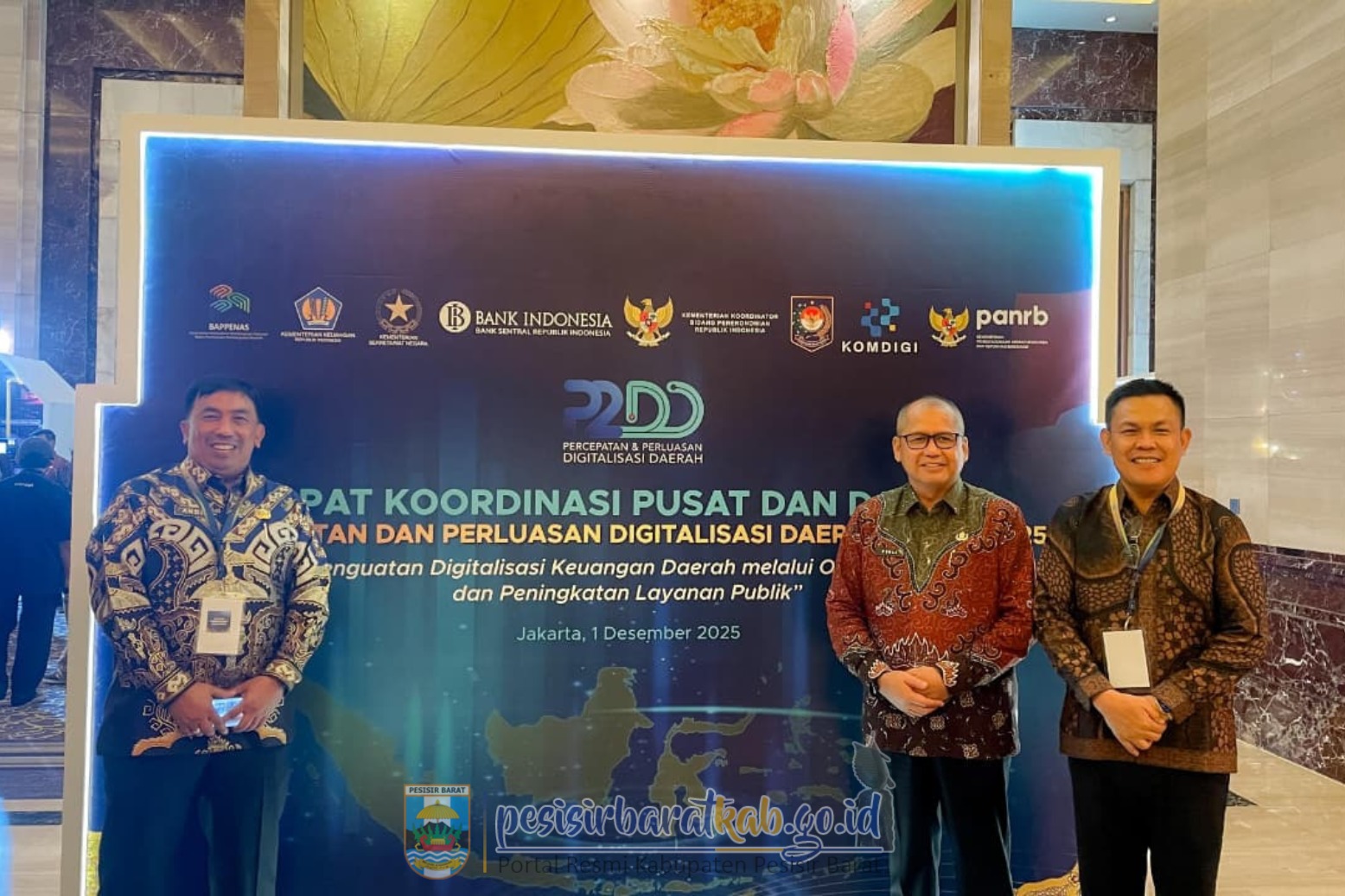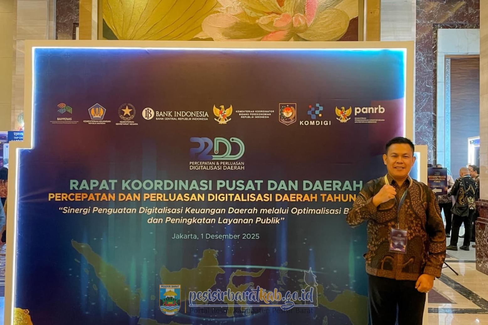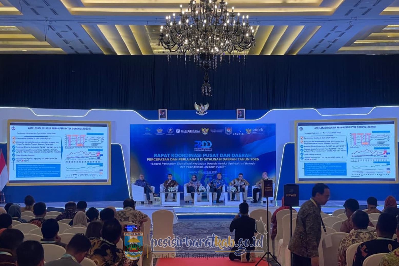 Jakarta, 1 Desember 2025 — Sekretaris Daerah Kabupaten Pesisir Barat, TEDI ZADMIKO, S.K.M., S.H., M.M., menghadiri Rapat Koordinasi Pusat dan Daerah (Rakorpusda) Percepatan dan Perluasan Digitalisasi Daerah Tahun 2025 yang digelar di Jakarta, Senin (1/12). Kegiatan nasional ini mengangkat tema “Sinergi Penguatan Digitalisasi Keuangan Daerah Melalui Optimalisasi Belanja dan Peningkatan Layanan Publik.”