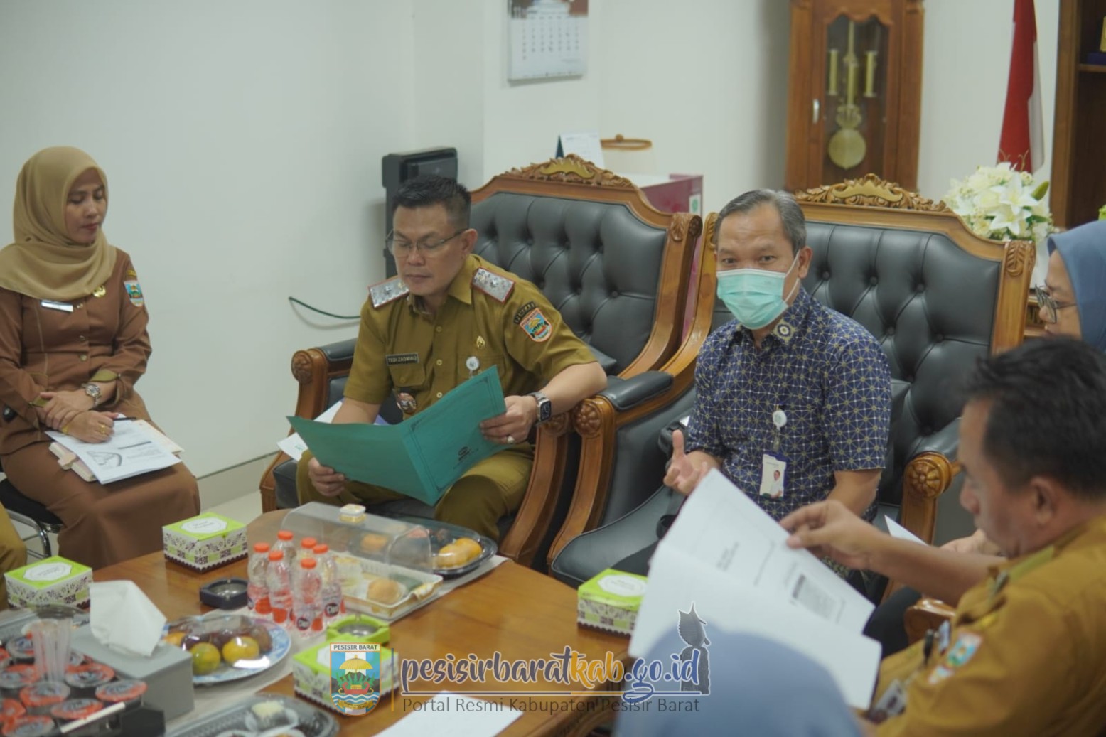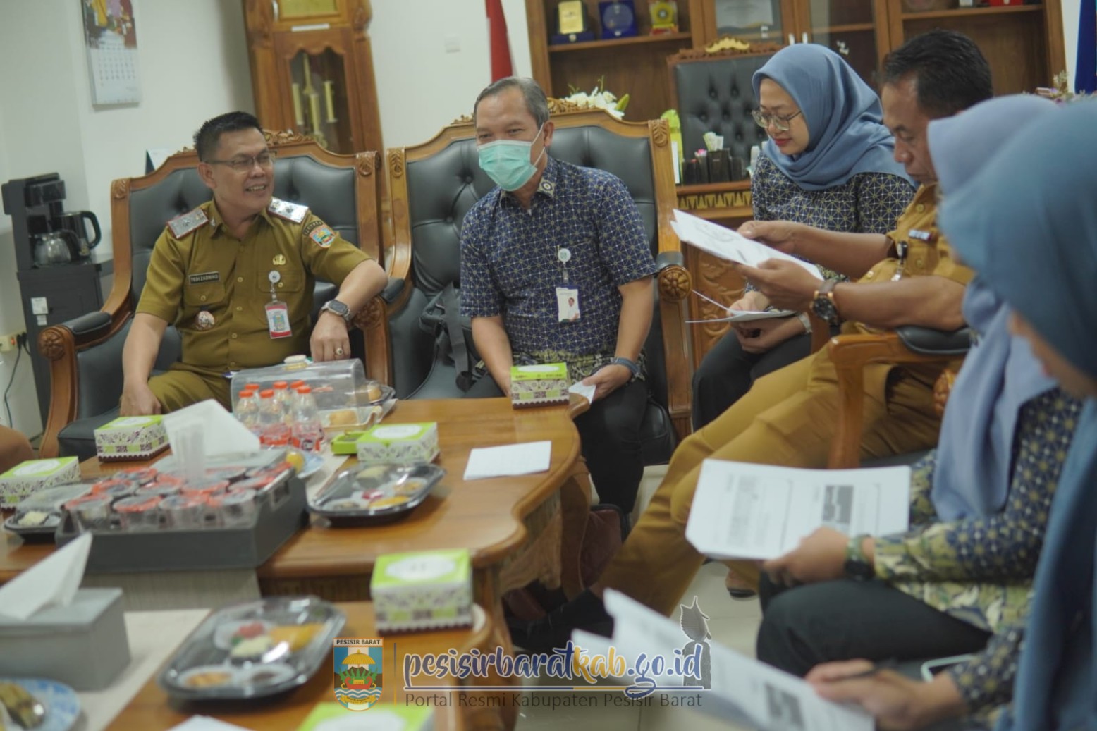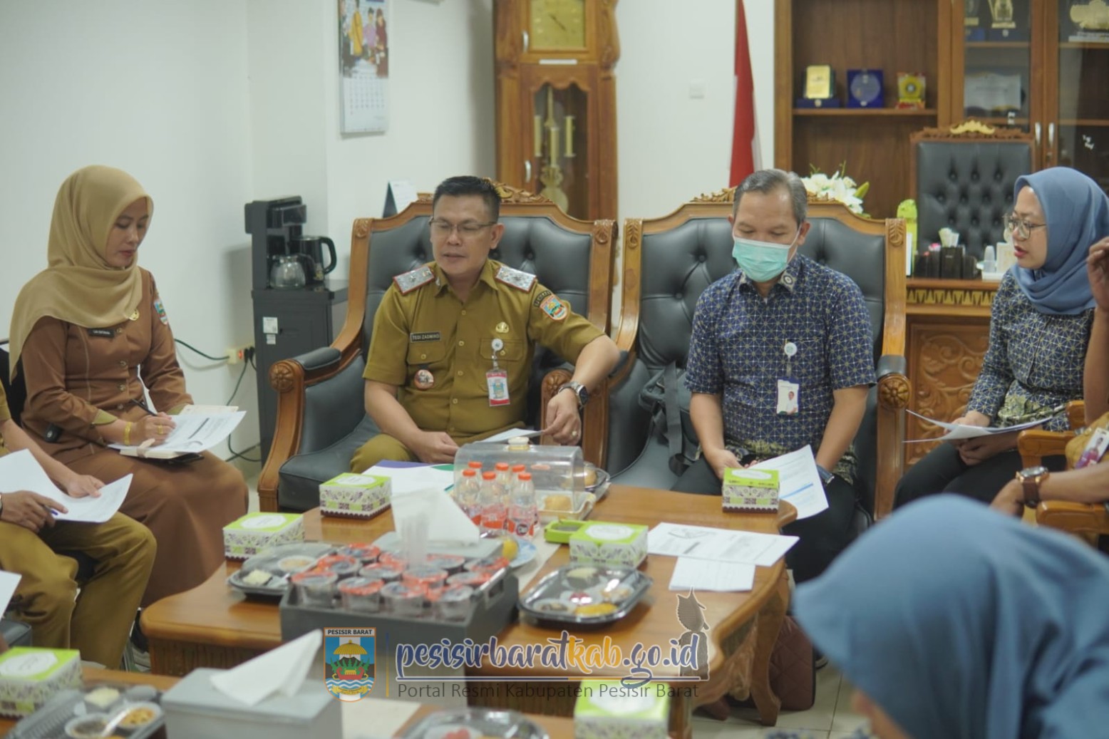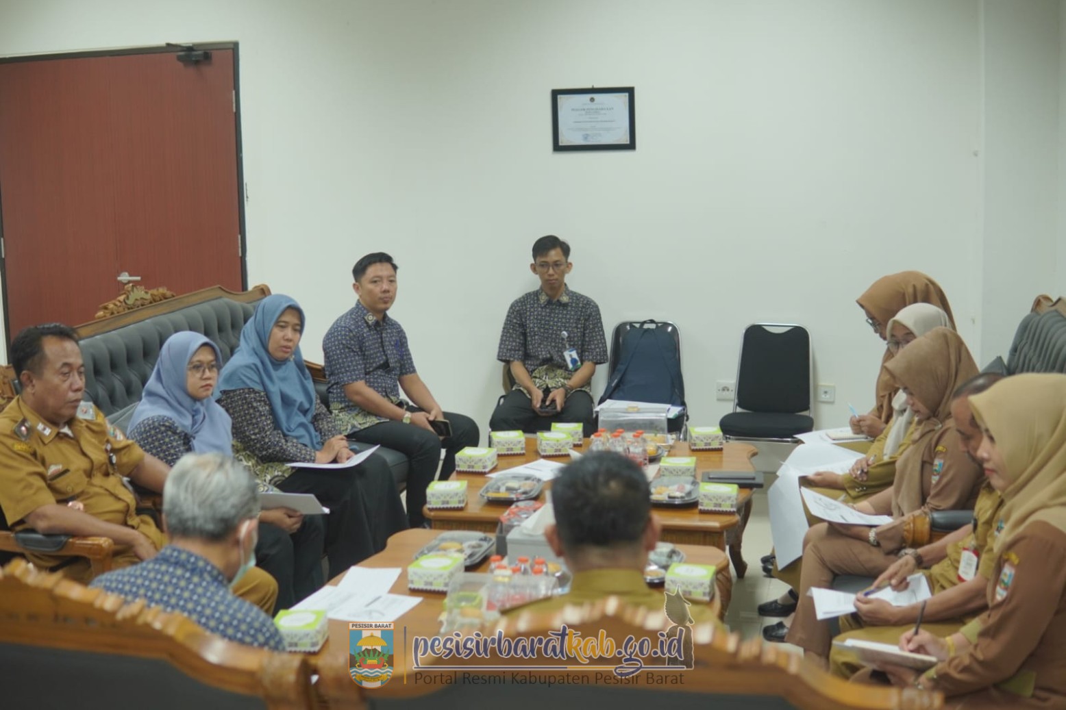 PESISIR BARAT-Sekretaris Daerah (Sekda) Kabupaten Pesisir Barat (Pesibar), Tedi Zadmiko, S.K.M., S.H., M.M., memimpin langsung Rapat Koordinasi (Rakor) Pembahasan Universal Health Coverage (UHC) Prioritas dan Rencana Kerja Pekerja Bukan Penerima Upah (PBPU) dan Bukan Penerima (BP) Pemkab Pesibar, di ruang kerja Sekda Lantai 3 Gedung Marga Sai Batin Komplek Perkantoran Pemkab Pesibar, Selasa (25/11/2025).