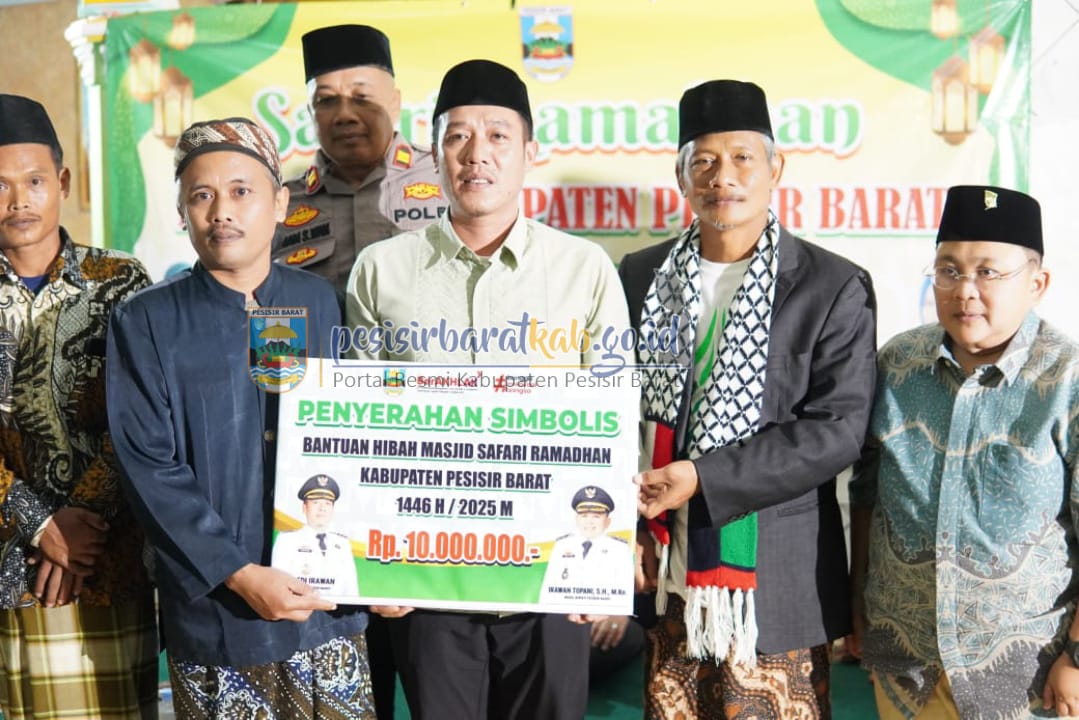 Bupati, Dedi Irawan melanjutkan, selama berlangsungnya kegiatan Safari Ramadhan, Pemkab Pesibar menyalurkan bantuan kepada 11 masjid yang tersebar di 11 kecamatan di Pesibar. Diharapkan program tersebut dapat meningkatkan semangat beribadah di masjid dan masjid-masjid lebih makmur dengan berbagai aktifitas dakwah di dalamnya. "Selain itu juga dilaksanakan pemberian bantuan sosial untuk marbot sebanyak 154 orang di 11 kecamatan, mudah- mudahan dapat meningkatkan kesejahteraan marbot," harap Bupati, Dedi Irawan.
