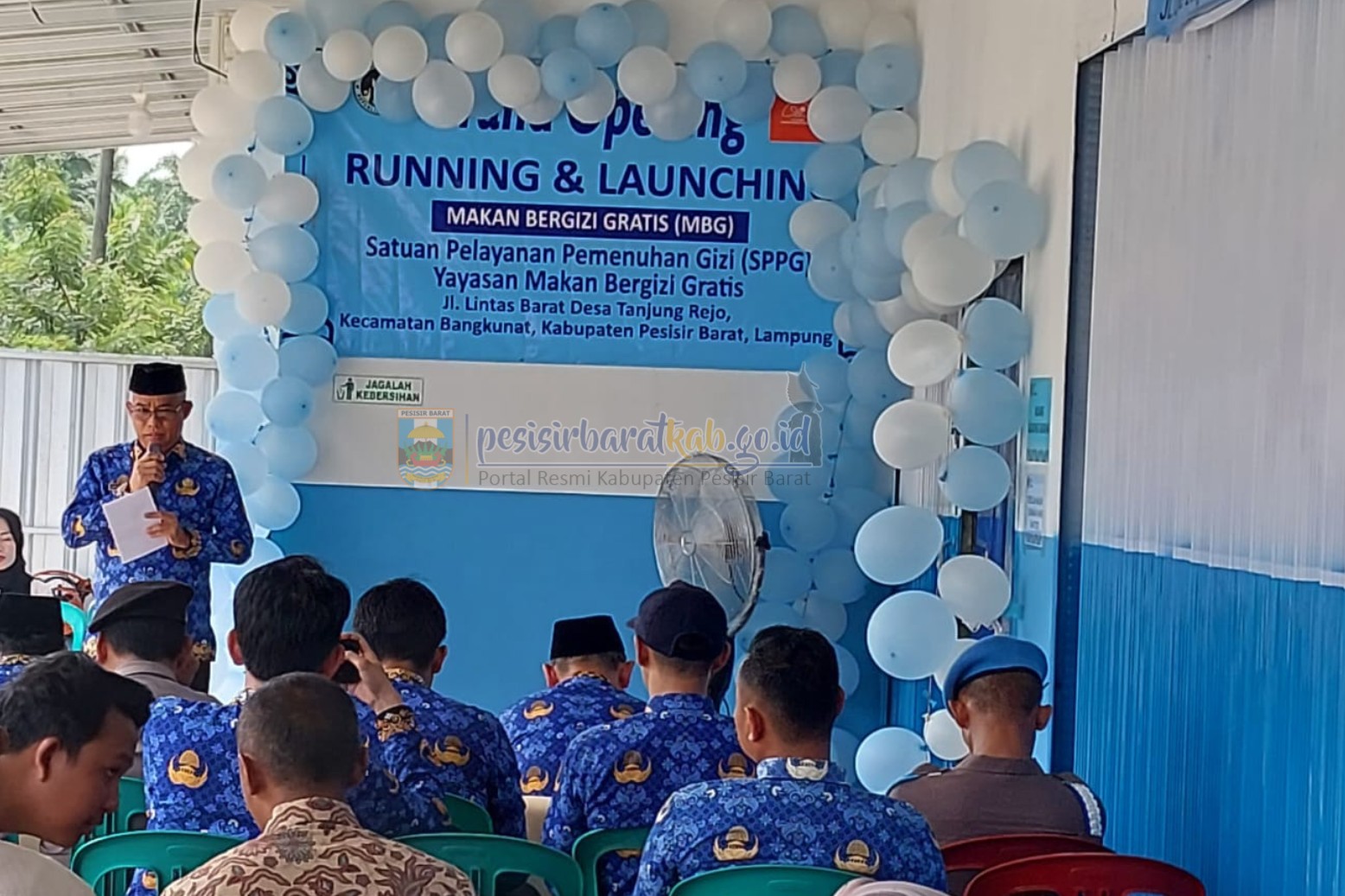 PESISIR BARAT – Pemerintah Kabupaten Pesisir Barat resmi meluncurkan Satuan Pelayanan Pemenuhan Gizi (SPPG) Pekon Tanjung Rejo, Kecamatan Bangkunat, Senin (27/4/2026). Peluncuran tersebut dihadiri langsung oleh Asisten I Bidang Pemerintahan, Ir. Armand Akhyuni, yang mewakili Bupati Pesisir Barat, Dedi Irawan.