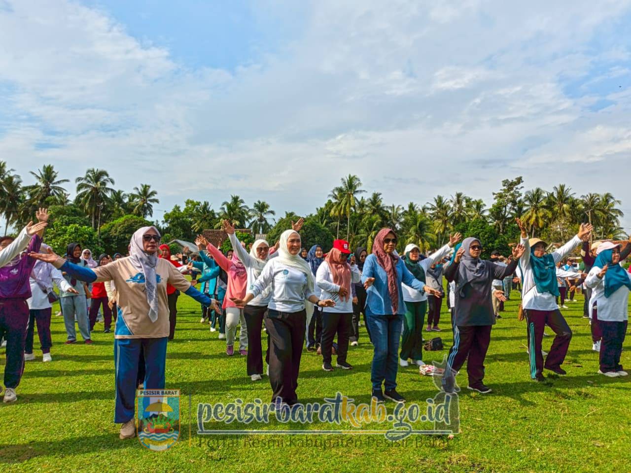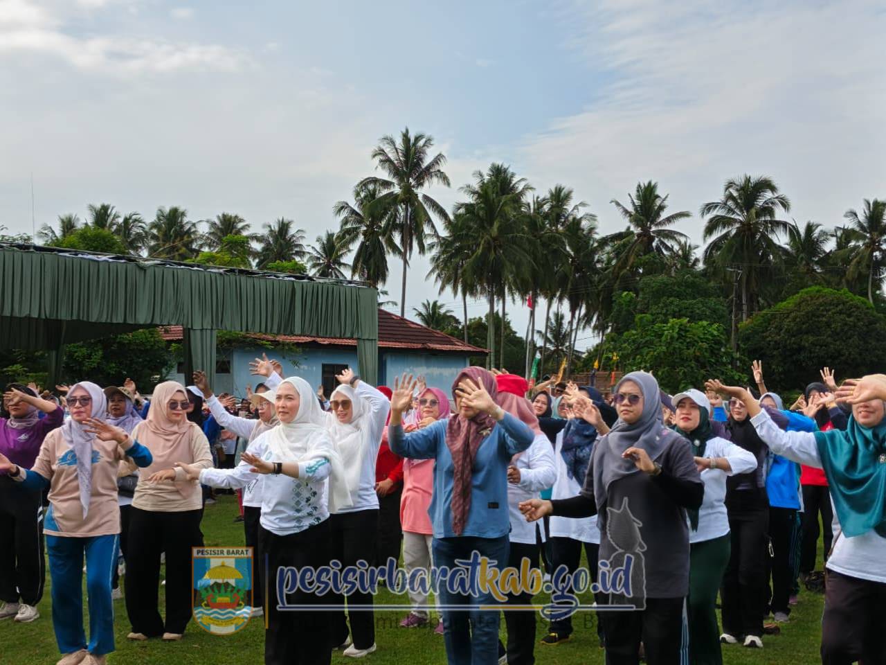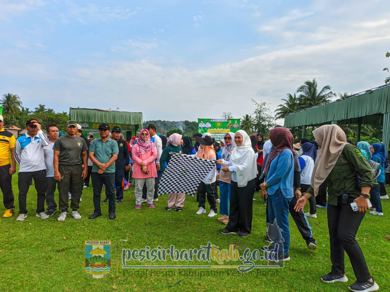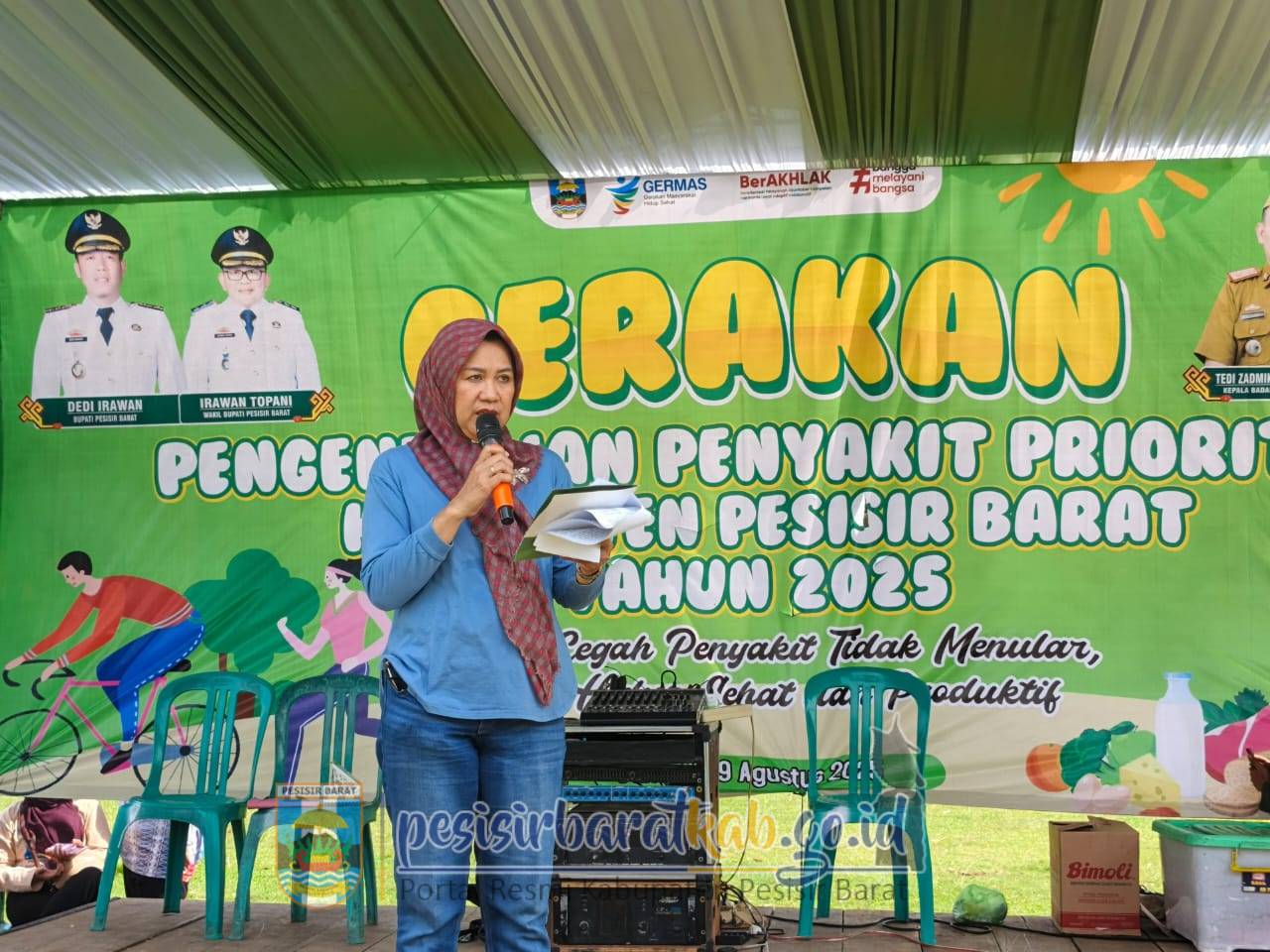 PESISIR BARAT-Staf Ahli Bidang Kemasyarakatan dan Sumber Daya Manusia (SDM) Sekretariat Pemerintah Kabupaten (Pemkab) Pesisir Barat (Pesibar), Dra. Henny Yulistiani, M.M., membuka kegiatan Gerakan Pengendalian Penyakit Prioritas Tahun 2025 yang dihelat di Lapangan Merdeka Kecamatan Pesisir Selatan, Jumat (29/8/2025).