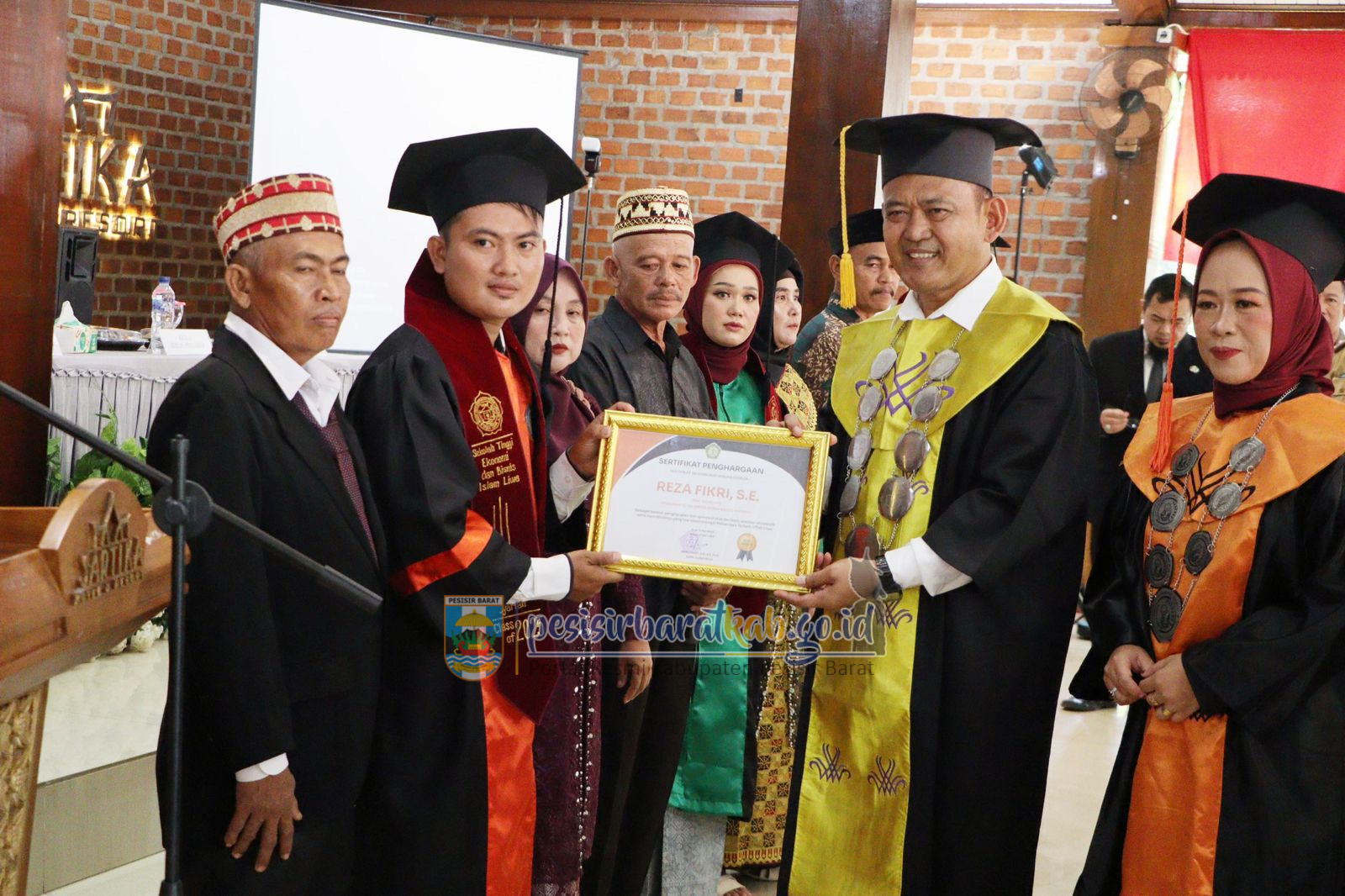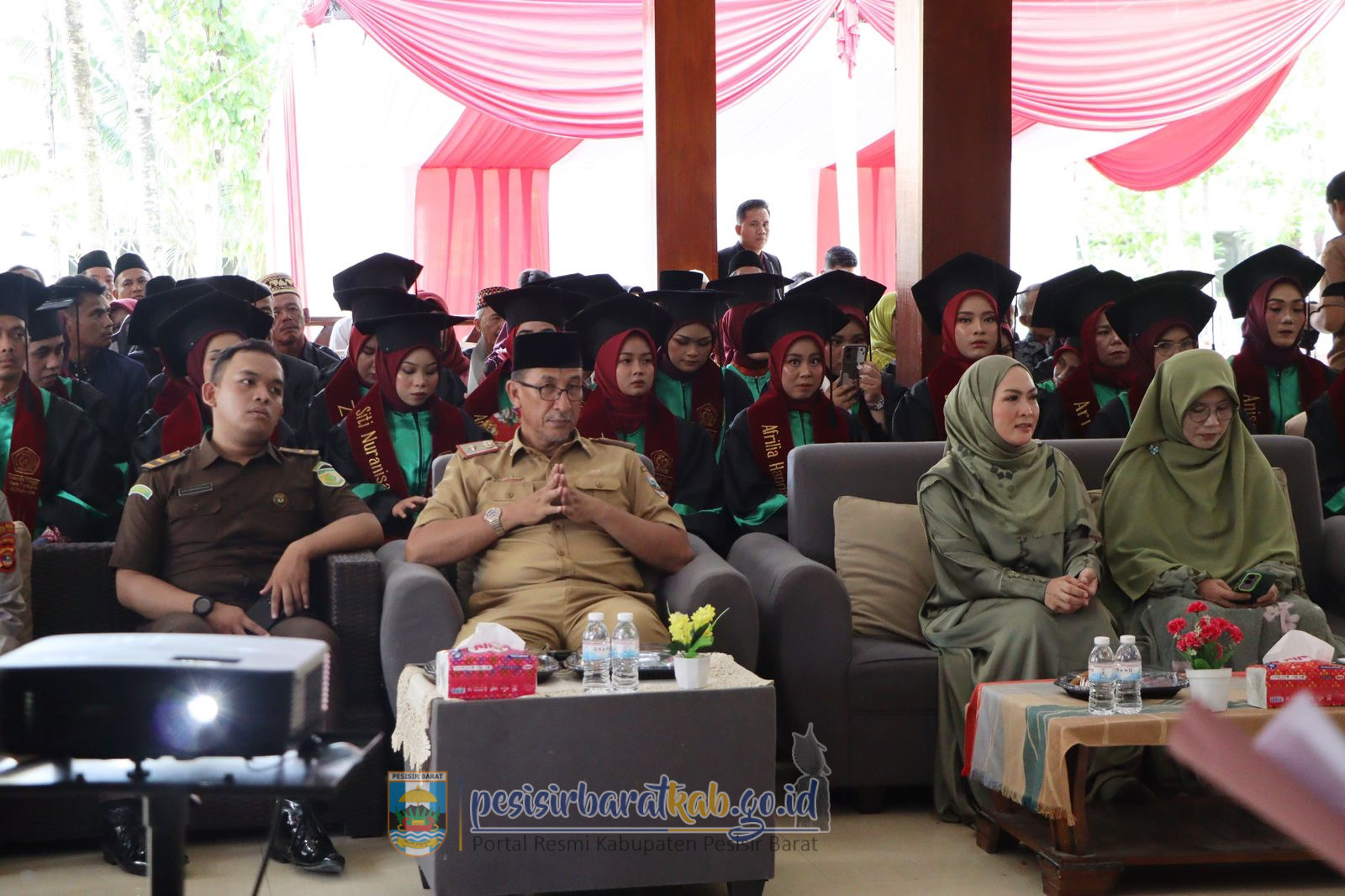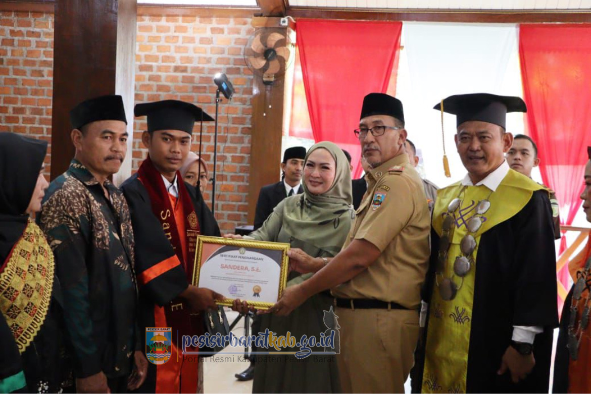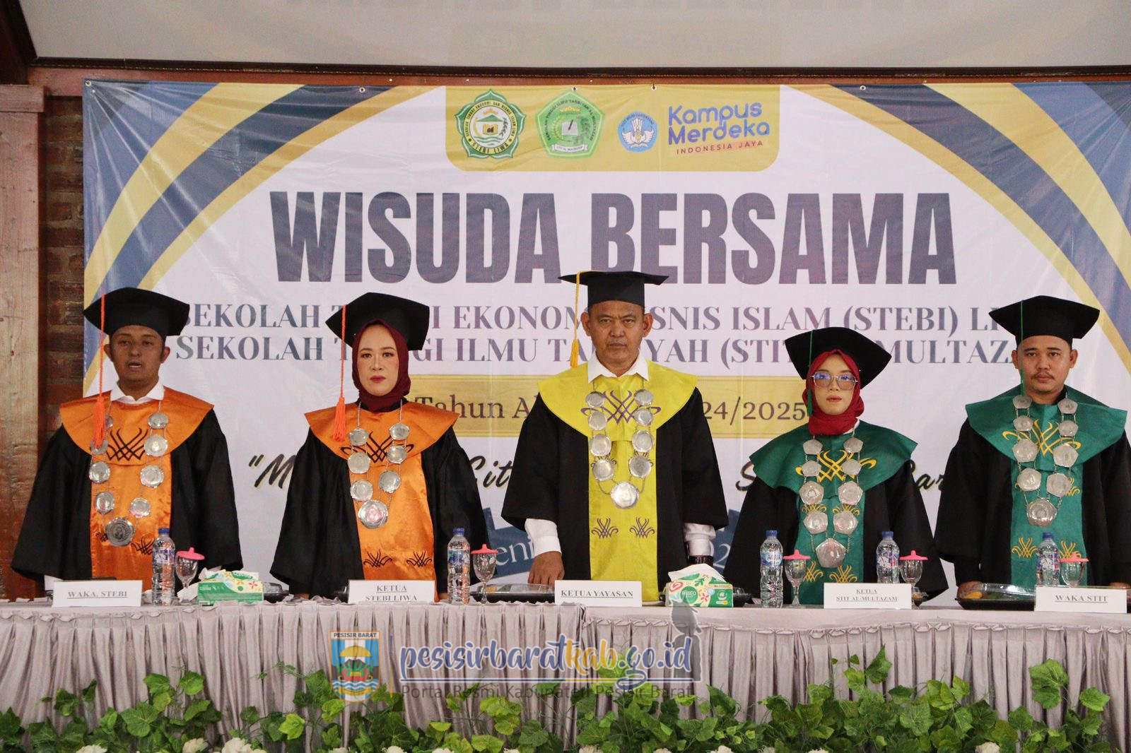 PESISIR BARAT-Kepala Dinas Komunikasi Informatika Statistik dan Persandian Kabupaten Pesisir Barat Suryadi, S.IP., M.M., menginformasikan bahwa, Staf Ahli Bupati Bidang Pembangunan Ekonomi dan Keuangan Sekretariat Pemerintah Kabupaten (Pemkab) Pesisir Barat (Pesibar), Drs. Jon Edwar, M.Pd., menghadiri kegiatan Wisuda Bersama Sekolah Tinggi Ekonomi Bisnis Islam (STEBI) Liwa dan Sekolah Tinggi Ilmu Tarbiyah (STIT) Al-Multazam Tahun Anggaran 2024/2025, di Hotel Sartika Pekon Seray Kecamatan Pesisir Tengah, Senin (5/5/2025).