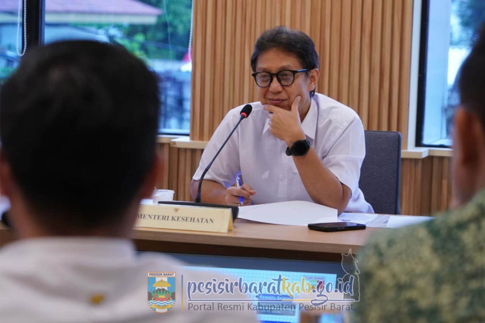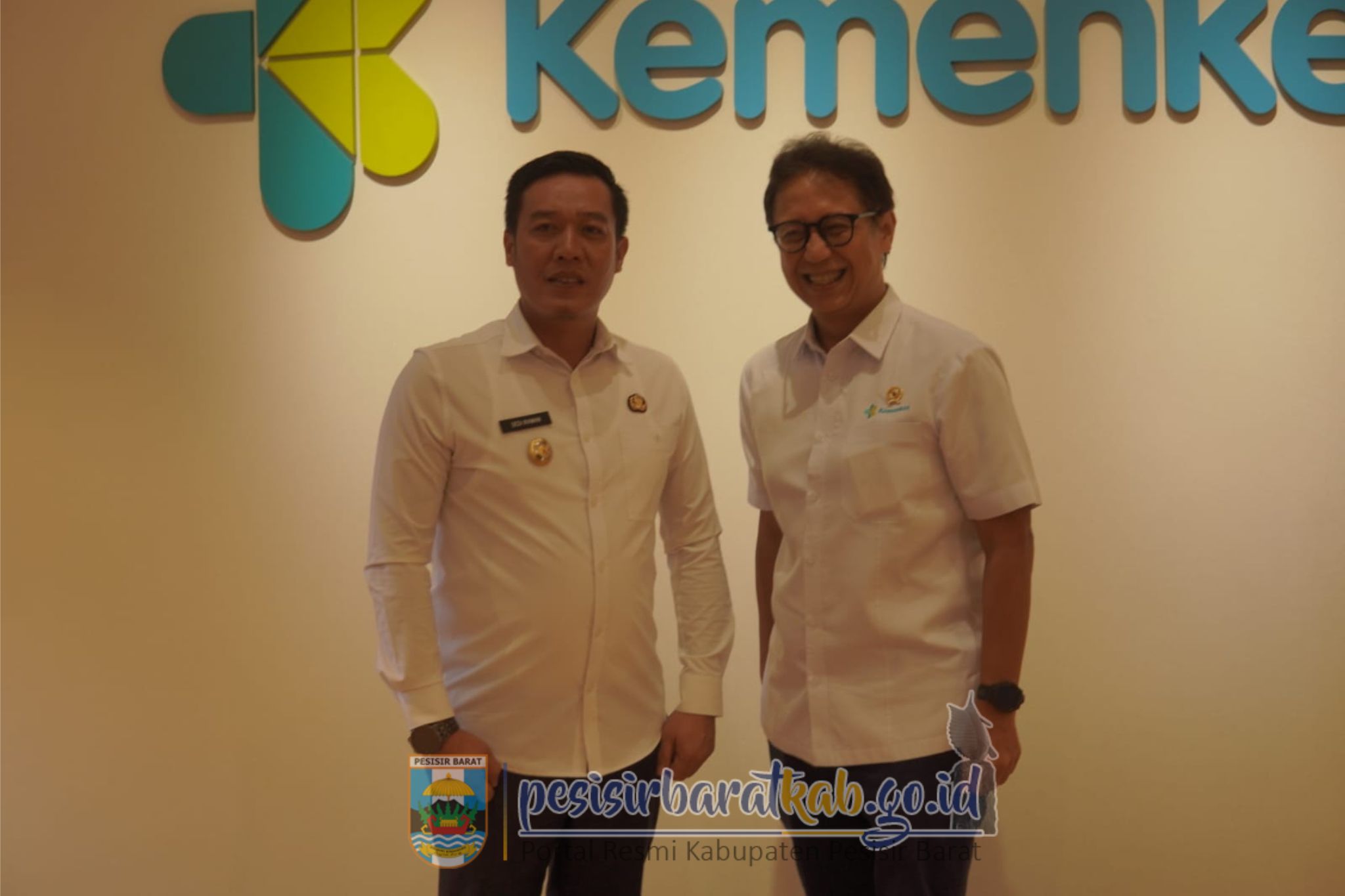 PESISIR BARAT-Bupati Pesisir Barat (Pesibar), Dedi Irawan, beraudiensi dengan Menteri Kesehatan (Menkes), Budi Gunadi Sadikin, dalam rangka pengajuan peningkatan infrastruktur pembangunan Unit Pelaksana Teknis Dinas (UPTD) Puskesmas Ngambur dan Ngaras, serta pemenuhan kebutuhan dokter gigi, di Jakarta Selatan, Kamis (16/10/2025).