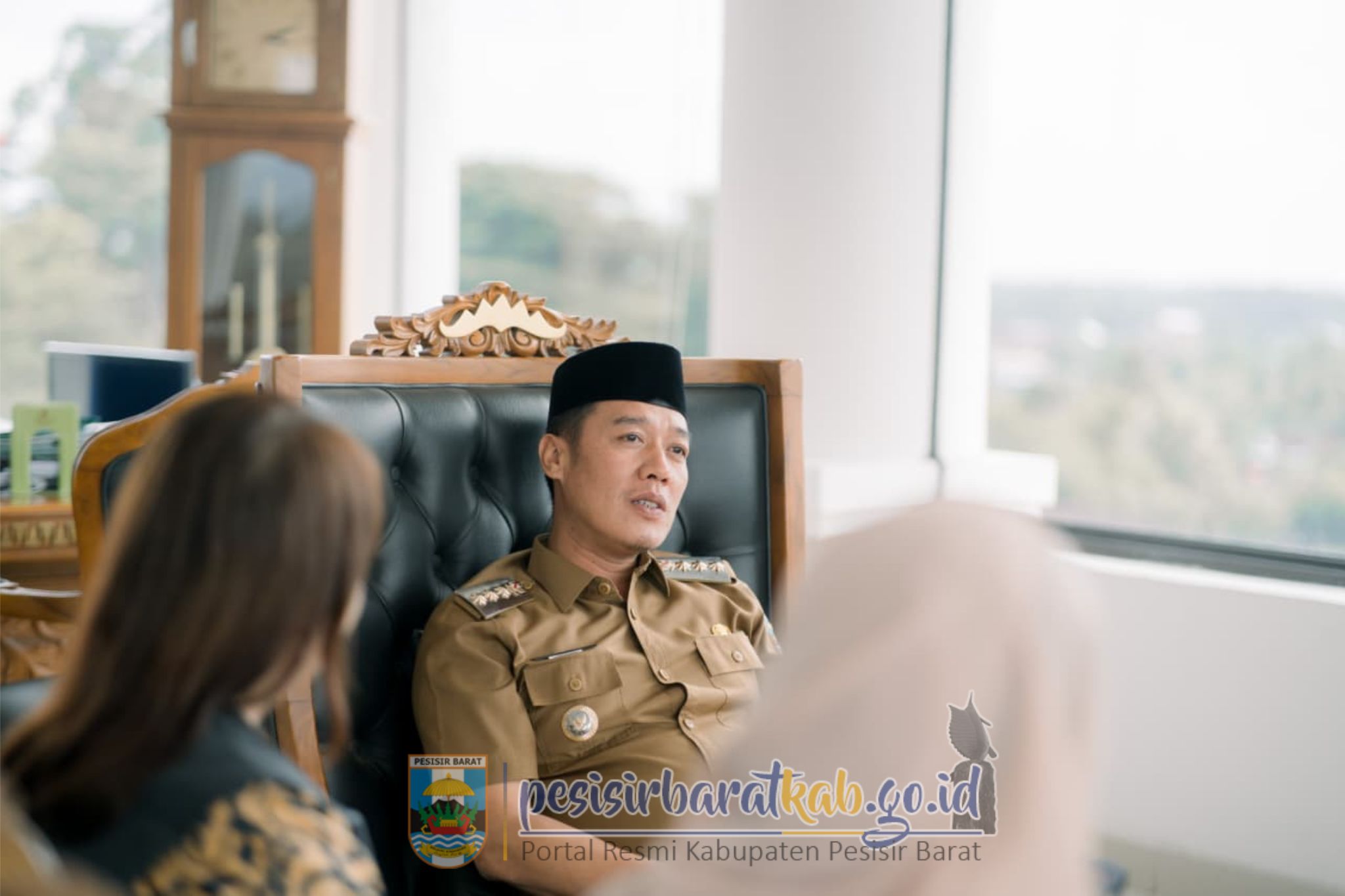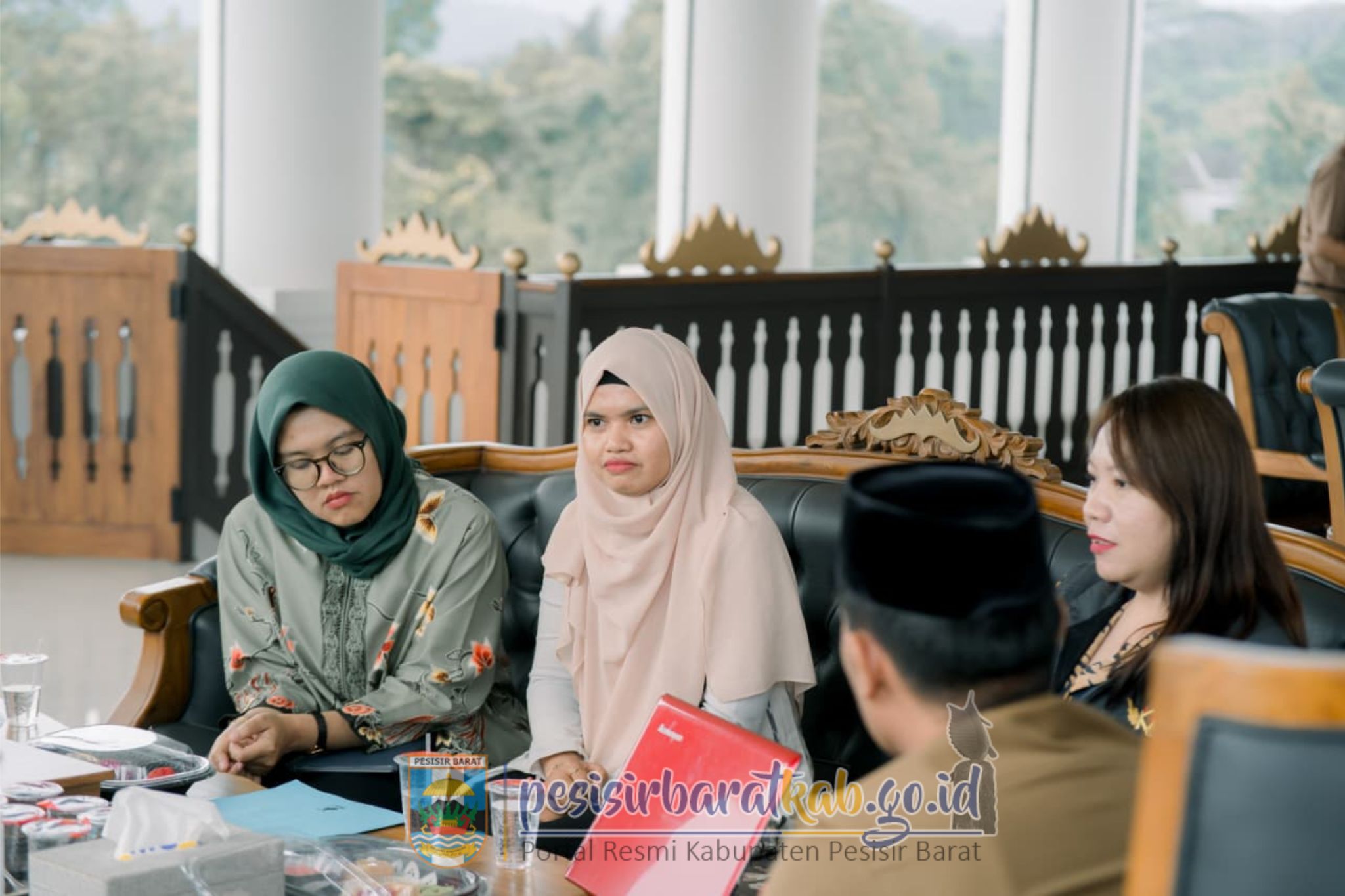PESISIR BARAT-Bupati Pesisir Barat (Pesibar), Dedi Irawan, menerima audiensi dari perwakilan Institut Teknologi Sumatera (ITERA) terkait rencana pelaksanaan Kuliah Kerja Nyata Pembelajaran dan Pemberdayaan Masyarakat (KKN PPM) Periode 16 Tahun 2026, di ruang kerja Bupati Lantai 5 Gedung Marga Sai Batin Komplek Perkantoran Pemkab Pesibar, Selasa (7/10/2025).