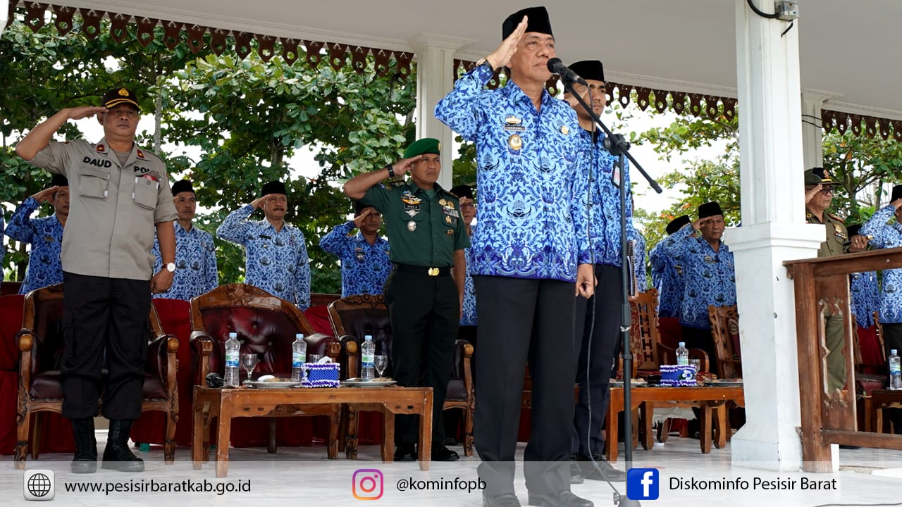 DISKOMINFO – Bupati Pesisir Barat Dr.Drs.Hi.Agus Istiqlal,SH.,MH yang diwakili oleh Sekretaris Daerah Kabupaten Pesisir Barat Drs.Azhari.,MM menghadiri sekaligus memimpin Upacara Paripurna bulanan yang digelar di Lapangan Merdeka Labuhan Jukung pada hari Kamis tanggal 17 Januari 2019.