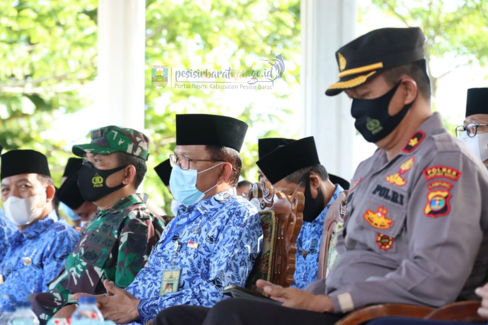 Upacara juga dihadiri oleh Bupati Pesisir Barat DR. Drs. Agus Istiqlal, SH., MH, Sekda Pesisir Barat Ir. N Lingga Kusuma, MP, Pejabat Pimpinan Tinggi Pratama, Pejabat Administrator, Pejabat Pengawas dan Pelaksana Dilingkungan Pemerintah Kabupaten Pesisir Barat Forkopimda Lambar-Pesibar dan Peserta upacara dari perwakilan Seluruh OPD.