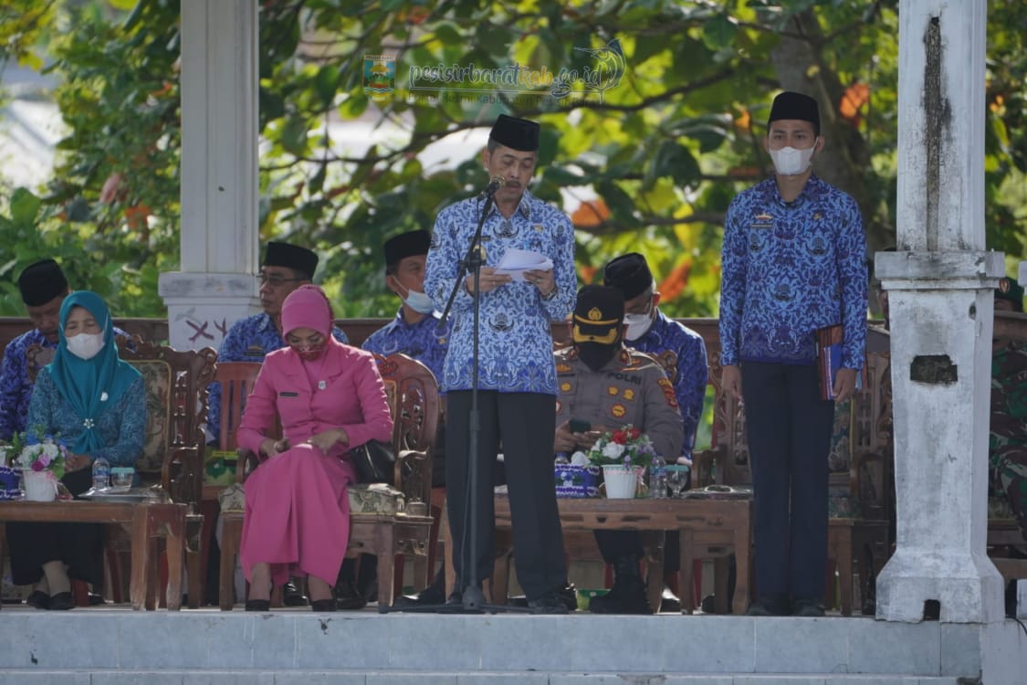 Dalam amanatnya Ir. N Lingga Kusuma, MP. menyampaikan bahwa upacara pada hari ini merupakan upacara rutin bulanan di kabupaten pesisir barat, pada kesempatan ini saya mengajak kita semua, baik yang bertugas pada instansi vertikal, TNU-Polri, BUMD, BUMN maupun aparatur sipil negara (ASN) pada jajaran pemerintah kabupaten pesisir barat untuk terus berbenah diri terutama dalam hal meningkatkan akuntabilitas kinerja dan pelayanan publik agar semakin baik, semakin responsif dan memuaskan.