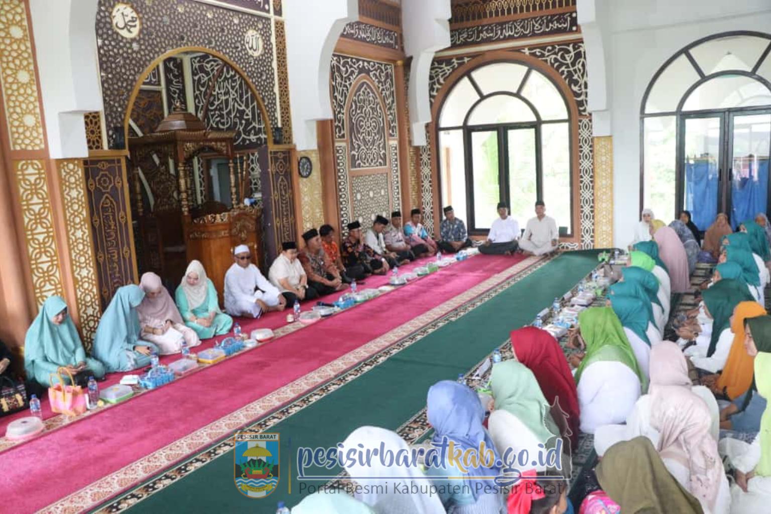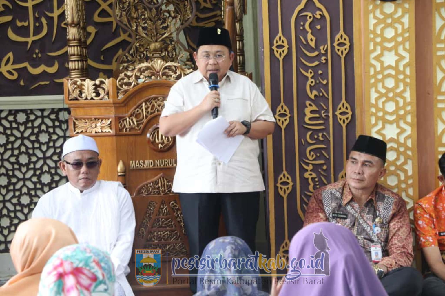 PESISIR BARAT-Wakil Bupati Pesisir Barat (Pesibar), Irawan Topani, S.H., M.Kn., menghadiri pengajian rutin bulanan Badan Kontak Majelis Taklim (BKMT) Pesibar yang digelar di Masjid Nurul Huda Pekon Cahya Negeri Kecamatan Lemong, Kamis (2/10/2025).