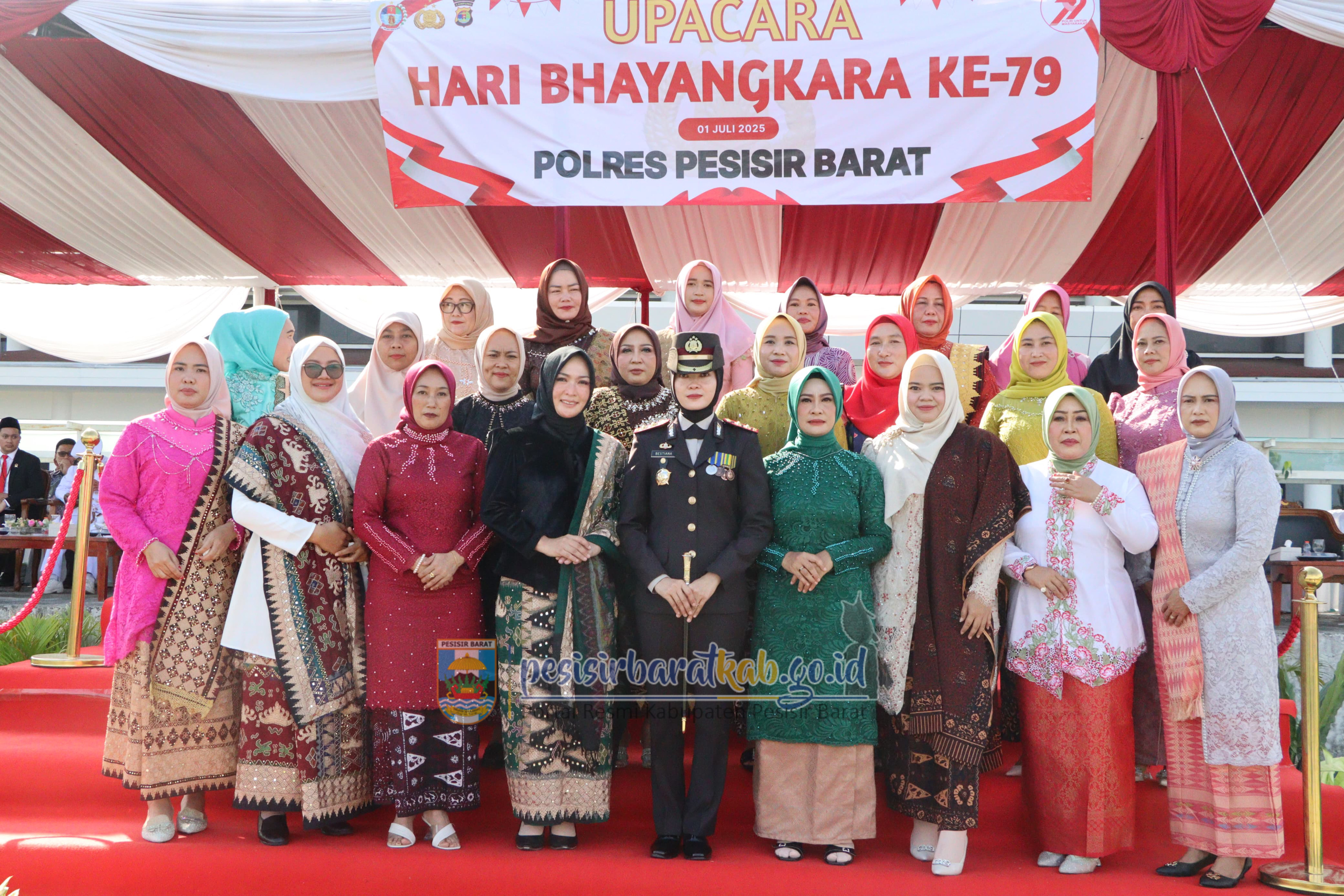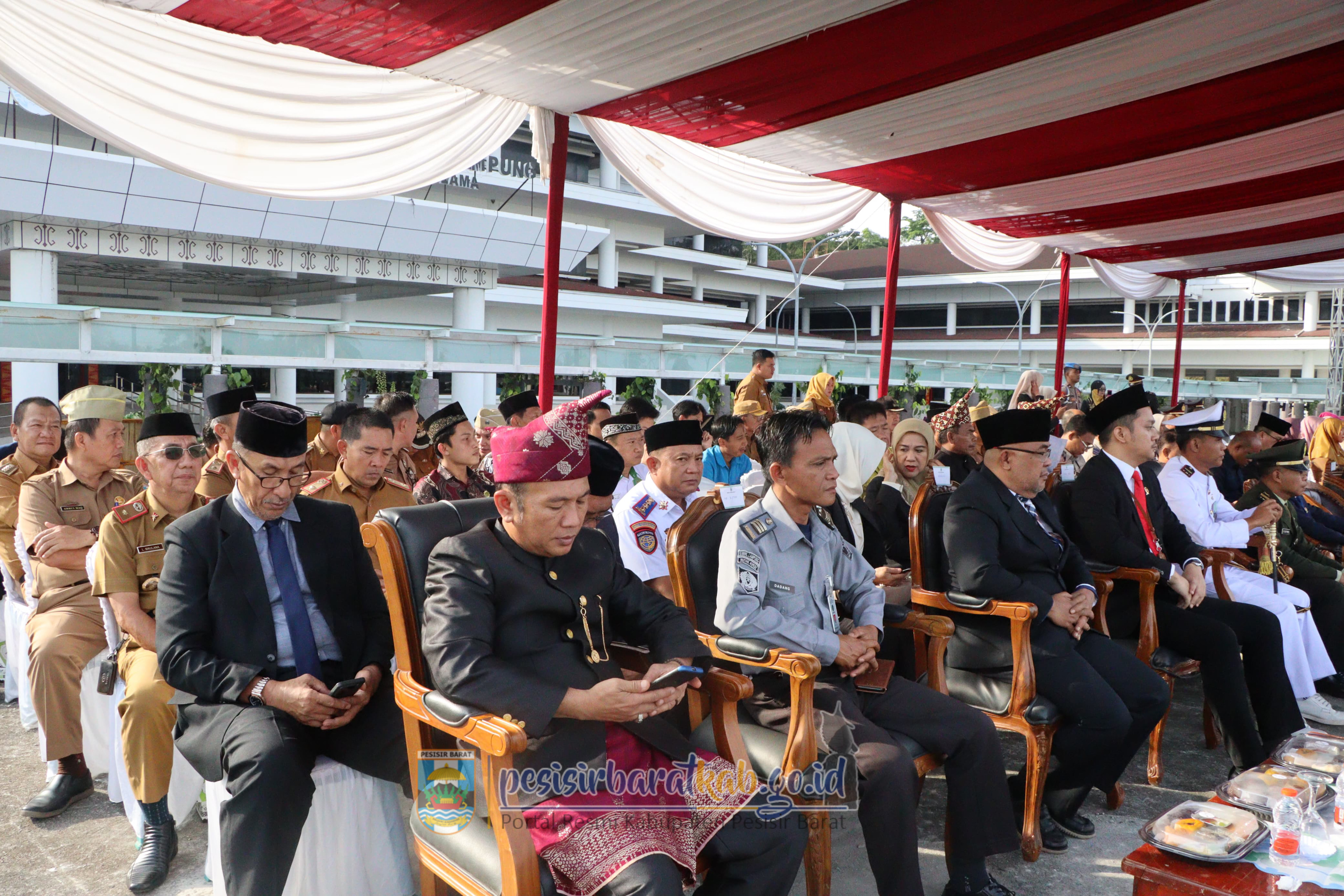 PESISIR BARAT-Wakil Bupati Pesisir Barat (Pesibar), Irawan Topani, S.H., M.Kn., menghadiri Upacara Peringatan Hari Bhayangkara ke-79, di Halaman Komplek Perkantoran Pemkab Pesibar, Selasa (1/7/2025).
