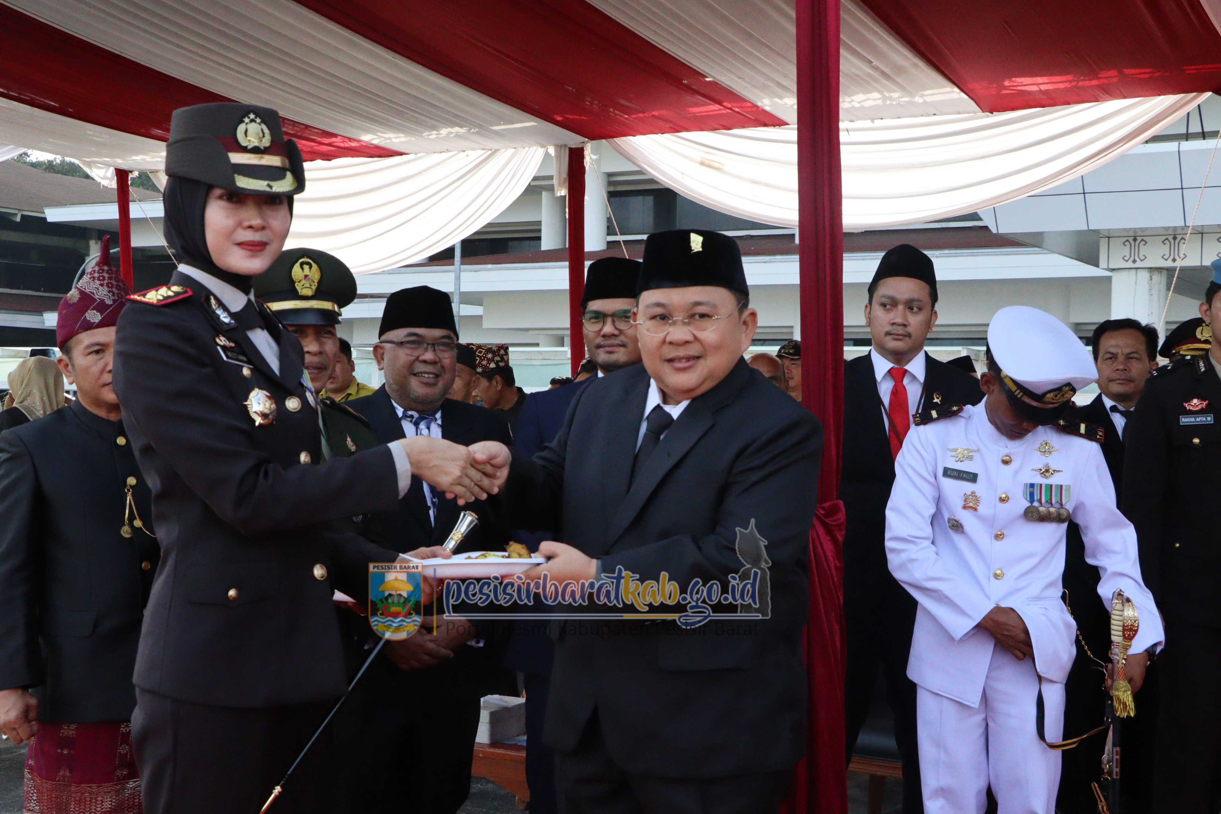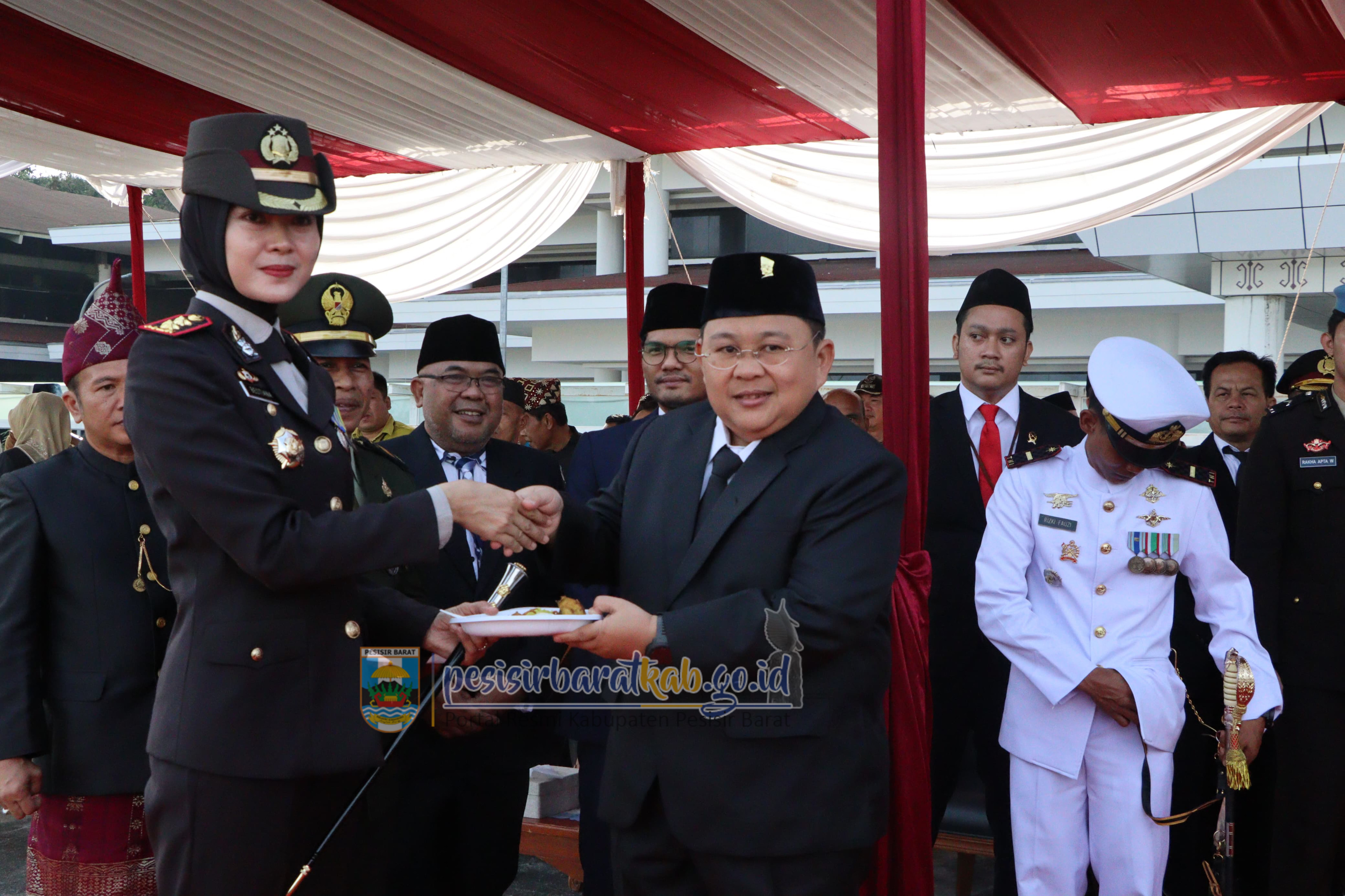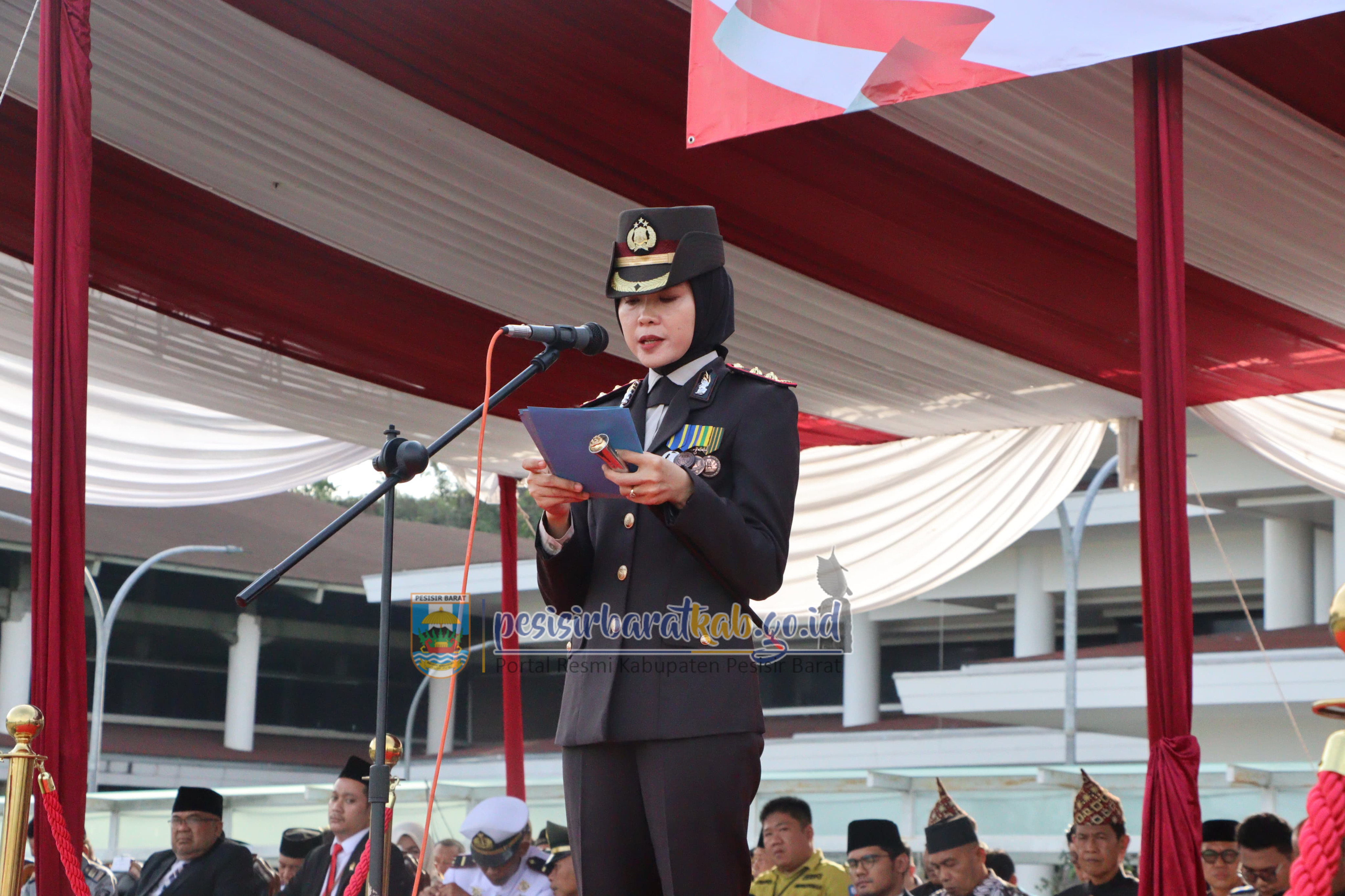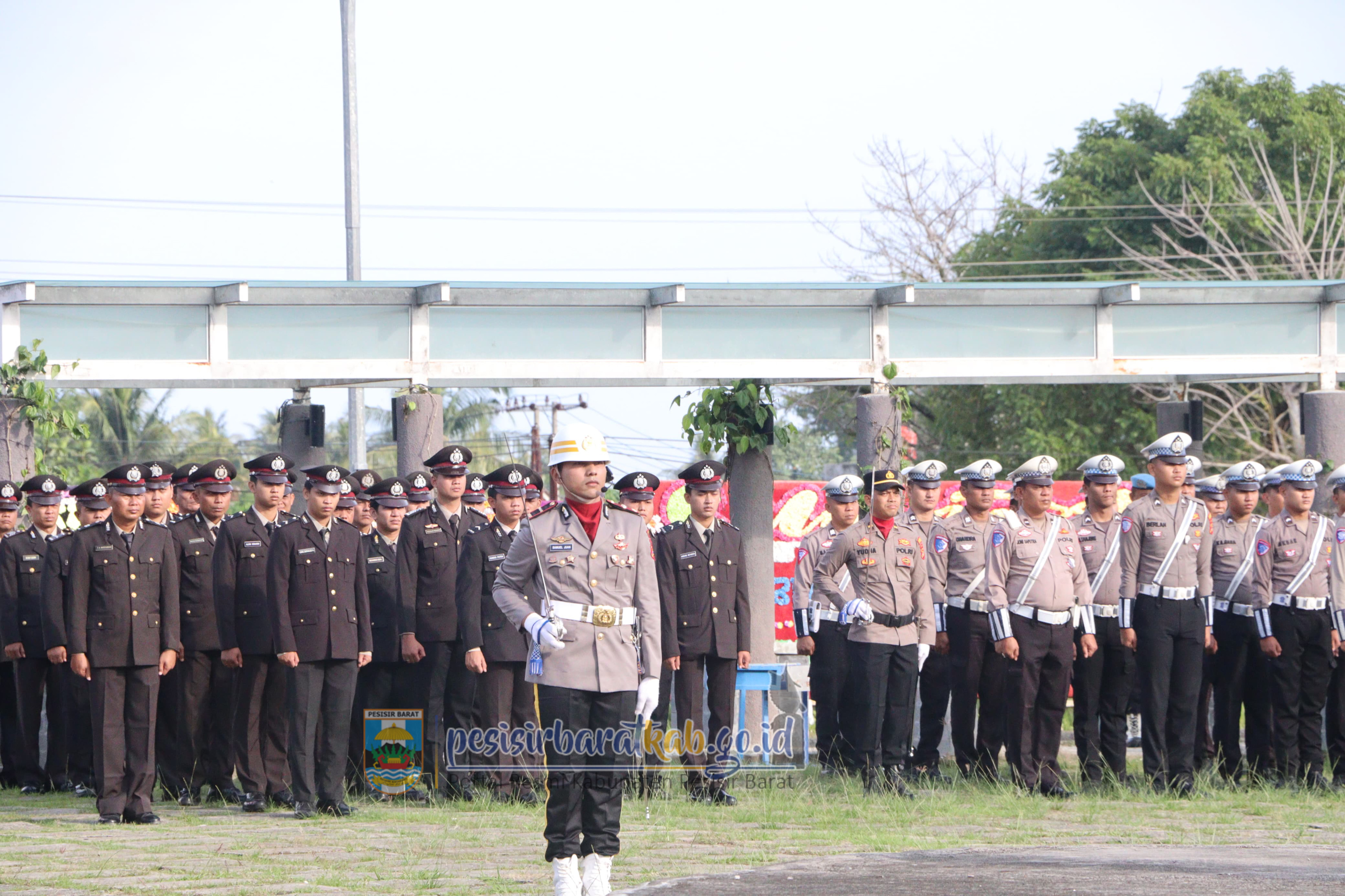 Bertindak sebagai Inspektur Upacara, Kapolres Pesibar, AKBP. Bestiana, S.I.K., M.M., dan Perwira Upacara, Ipda. Samuel Juan Millennio, S.Tr.K.