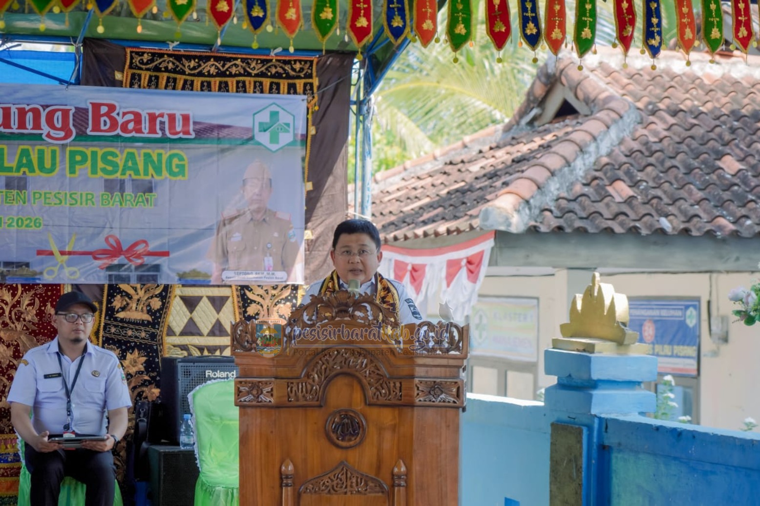Dalam sambutannya, Wakil Bupati membacakan pesan Bupati Pesisir Barat yang menegaskan bahwa pembangunan gedung tersebut bukan sekadar menghadirkan fasilitas fisik, melainkan wujud nyata kepedulian dan komitmen pemerintah daerah dalam menghadirkan layanan kesehatan yang lebih dekat, layak, dan bermartabat bagi seluruh masyarakat, khususnya warga Pulau Pisang.