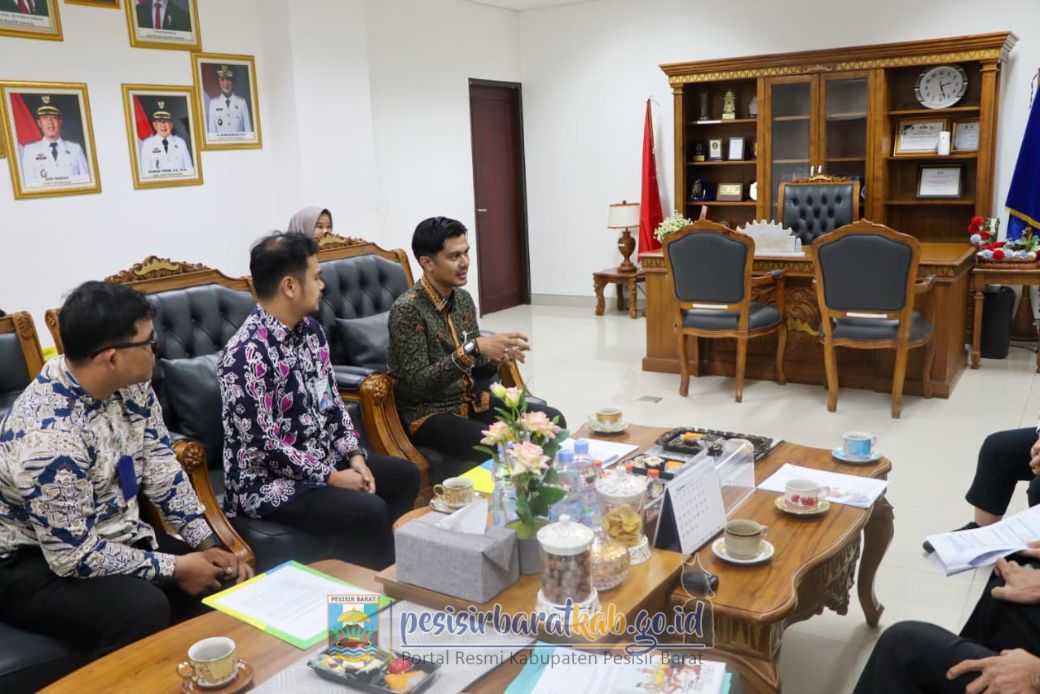 PESISIR BARAT-Wakil Bupati Pesisir Barat (Pesibar), Irawan Topani, S.H., M.Kn., menyambut langsung audiensi Badan Penyelenggara Jaminan Sosial (BPJS) Ketenagakerjaan Cabang Lampung Utara (Lampura), di ruang kerja Wakil Bupati Lantai 3 Gedung Marga Sai Batin, Rabu (3/12/2025).