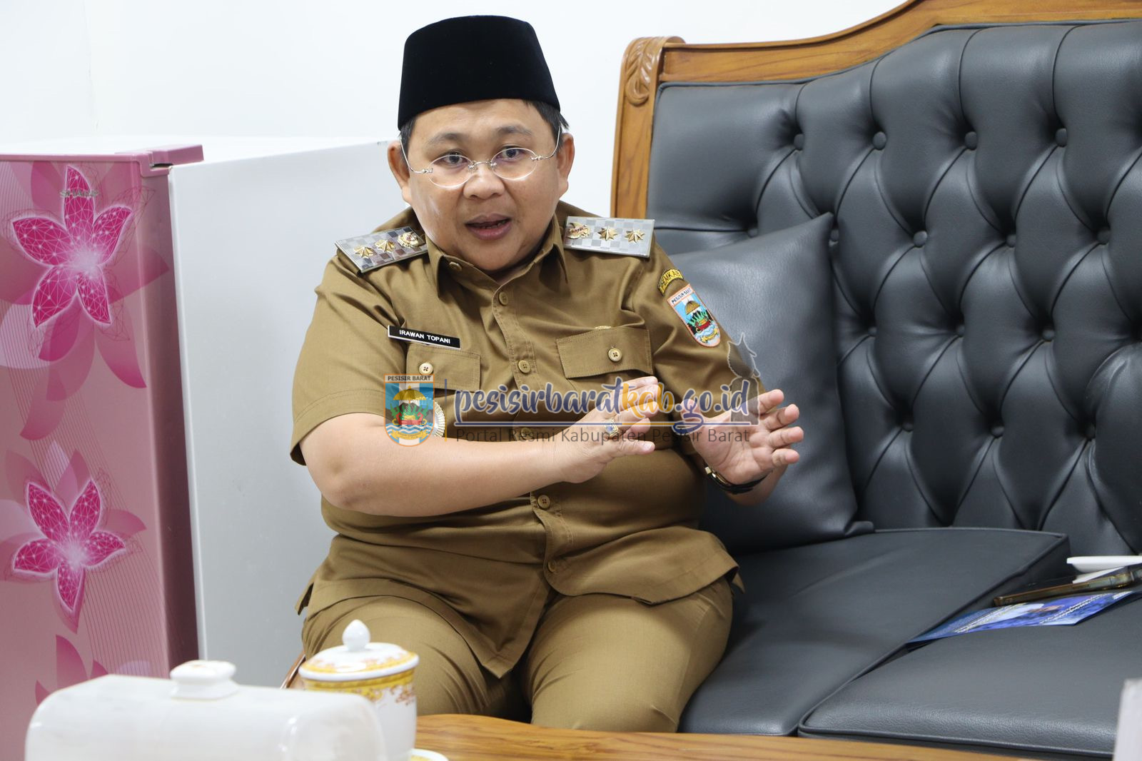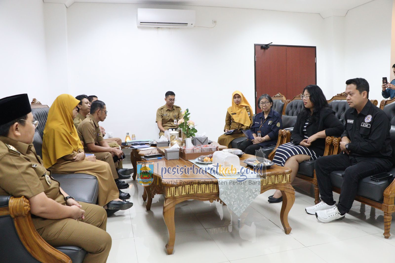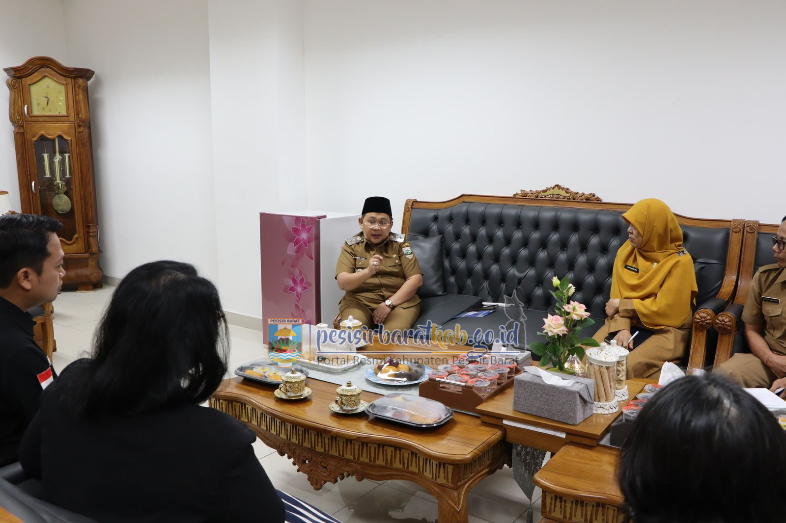 PESISIR BARAT-Wakil Bupati Pesisir Barat (Pesibar), Irawan Topani, S.H., M.Kn., menyambut kunjungan pihak Universitas Indonesia Mandiri (UIM), diruang kerja Wakil Bupati, Lantai 3 Gedung Marga Sai Batin Komplek Perkantoran Pemkab Pesibar, Senin (28/7/2025).